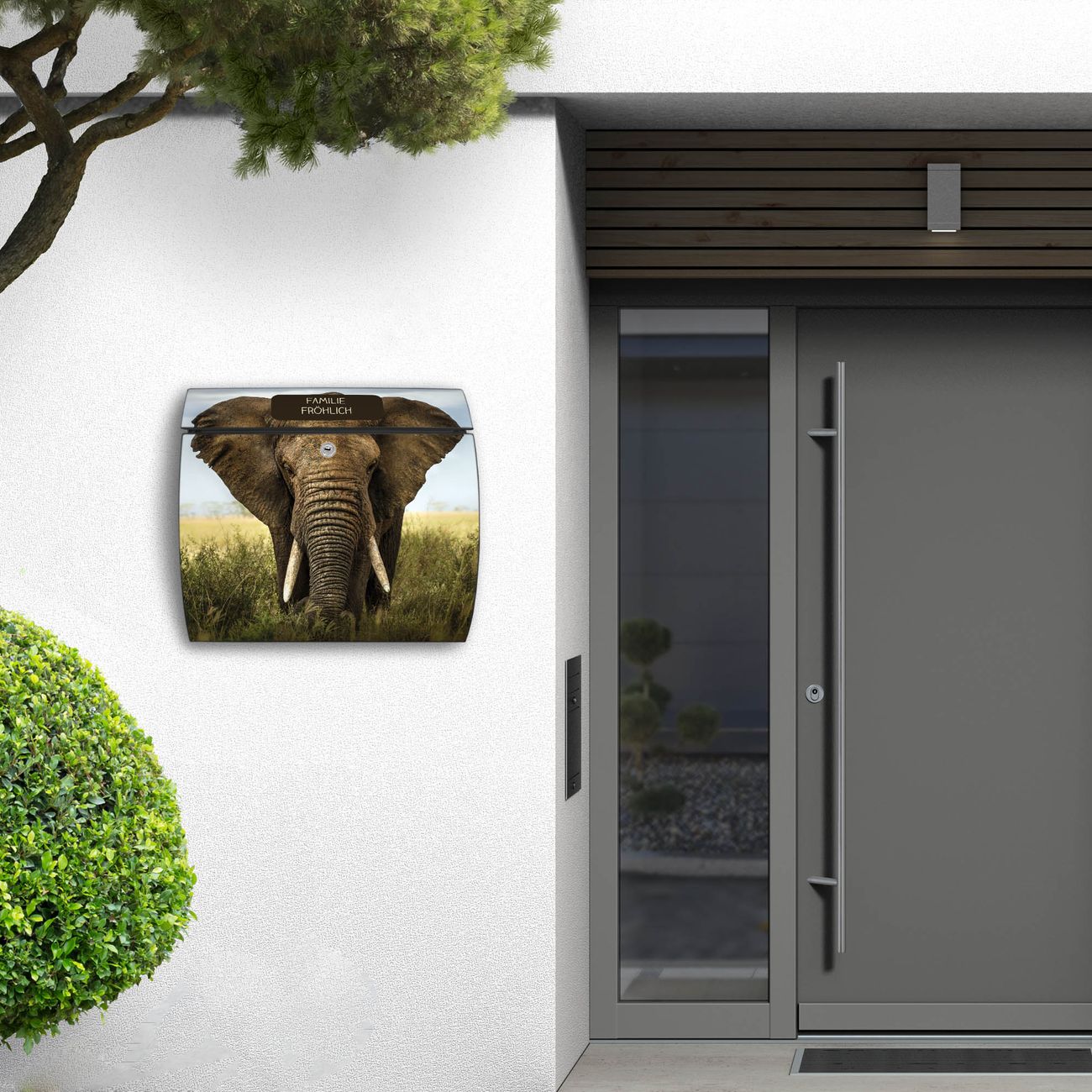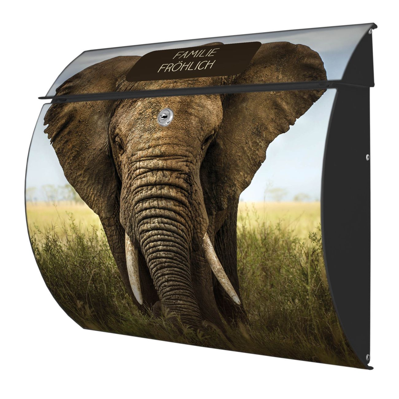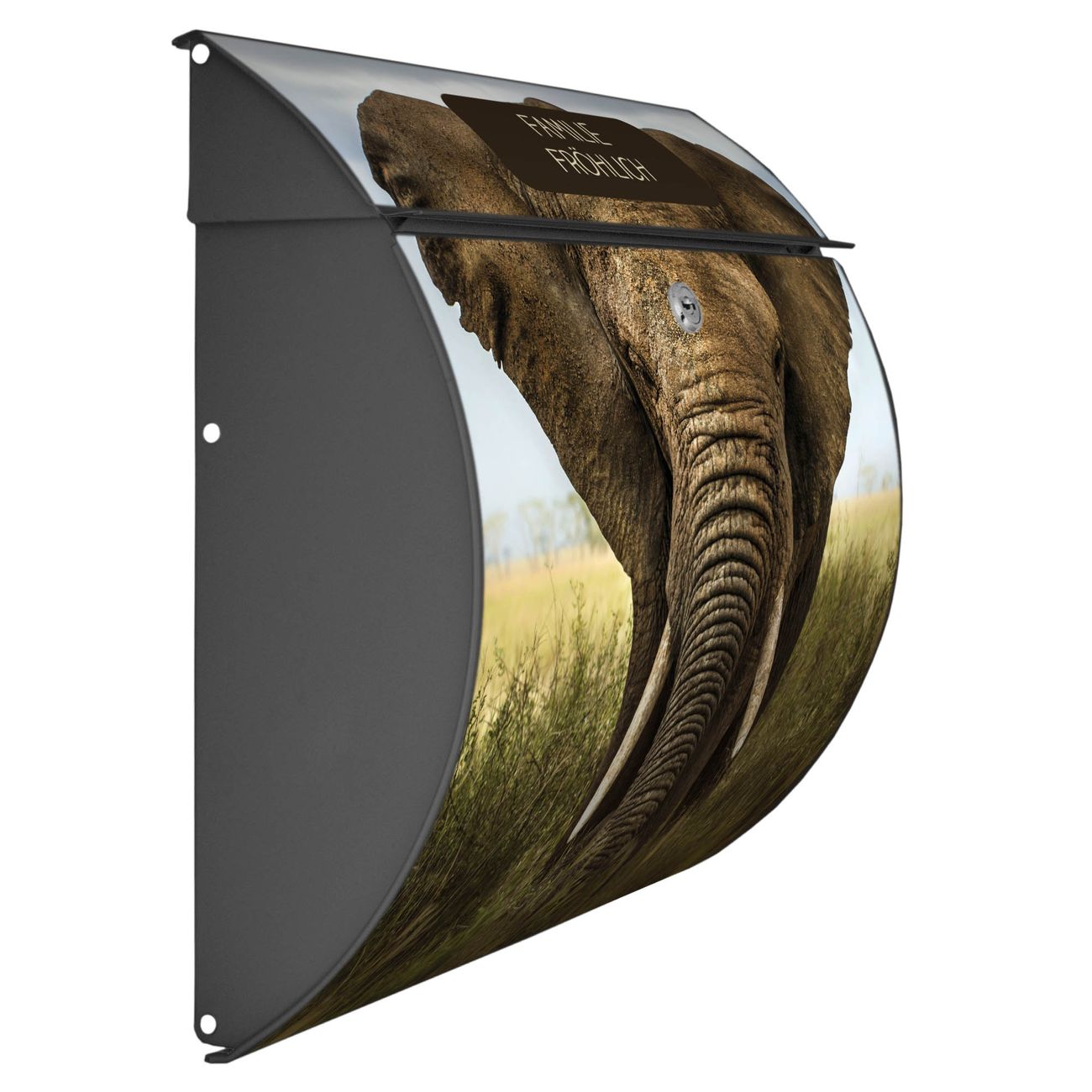 FUNKTION: DESIGN: Das Burg Wächter Modell Toscana mit Motiv Korbinian hat ein sehr ansprechendes und zeitloses Design und ist besonderes wetterfest. Heben Sie Sich von der tristen grauen Masse ab, ohne auf Funktionalität zu verzichten. Wir bieten Ihnen ebenfalls Namensschilder, bereits beschriftet oder frei zu beschriften, und verschiedene selbst gestaltete Bitte-Keine-Werbung-Aufkleber. DETAILS: Der Postkasten besteht aus vollflächig verzinktem Stahl welcher in Anthrazit oder Weiß lackiert wurde oder aus Edelstahl (je nach gewählter Variante). Das Motiv besteht aus einer wetter- und UV-festen Folie, die mit einem Schutzlaminat überzogen ist, durch die Ihren Briefkasten zusätzlich vor Kratzern geschützt ist und auf den Briefkasten kaschiert wurde. Sie erhalten zu Ihrem neuen Design Briefkasten 2 Schlüssel sowie das passende Montagematerial. BANJADO: Ihr Briefkasten wird von Burg Wächter in Deutschland gefertigt und in unserer kleinen Manufaktur von Hand veredelt. Die Motivfolie ist lösungsmittelfrei und schutzlaminiert, dies sorgt für einen langen Halt. Wir legen großen Wert auf die Verbindung von Funktionalität und Design. Sie erhalten besondere Handarbeit aus Sachsen und Made in Germany.