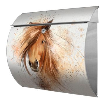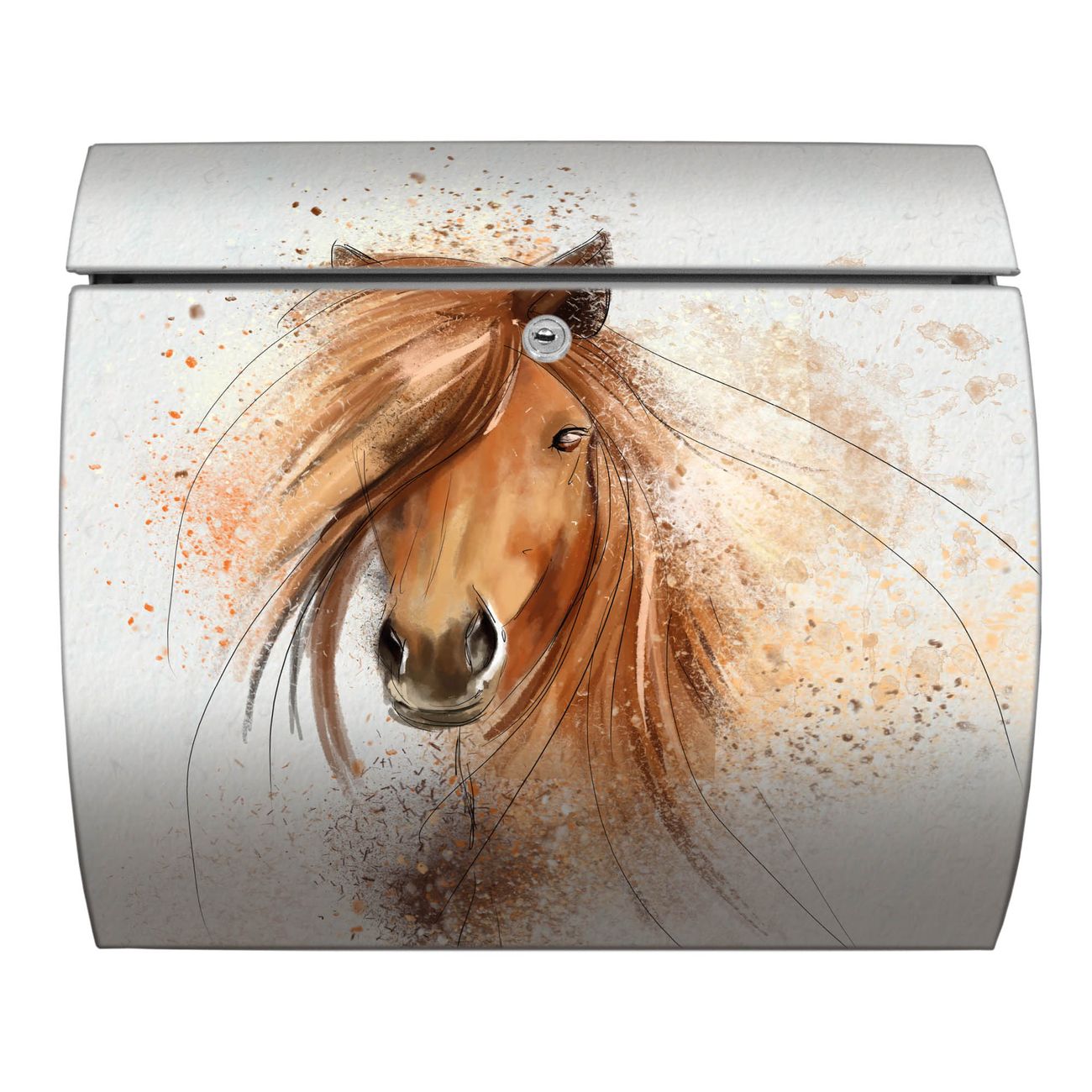 FUNKTION: DESIGN: Das Burg Wächter Modell Toscana mit Motiv Magic Horse hat ein sehr ansprechendes und zeitloses Design und ist besonderes wetterfest. Heben Sie Sich von der tristen grauen Masse ab, ohne auf Funktionalität zu verzichten. Wir bieten Ihnen ebenfalls Namensschilder, bereits beschriftet oder frei zu beschriften, und verschiedene selbst gestaltete Bitte-Keine-Werbung-Aufkleber. DETAILS: Der Postkasten besteht aus vollflächig verzinktem Stahl welcher in Anthrazit oder Weiß lackiert wurde oder aus Edelstahl (je nach gewählter Variante). Das Motiv besteht aus einer wetter- und UV-festen Folie, die mit einem Schutzlaminat überzogen ist, durch die Ihren Briefkasten zusätzlich vor Kratzern geschützt ist und auf den Briefkasten kaschiert wurde. Sie erhalten zu Ihrem neuen Design Briefkasten 2 Schlüssel sowie das passende Montagematerial. BANJADO: Ihr Briefkasten wird von Burg Wächter in Deutschland gefertigt und in unserer kleinen Manufaktur von Hand veredelt. Die Motivfolie ist lösungsmittelfrei und schutzlaminiert, dies sorgt für einen langen Halt. Wir legen großen Wert auf die Verbindung von Funktionalität und Design. Sie erhalten besondere Handarbeit aus Sachsen und Made in Germany.