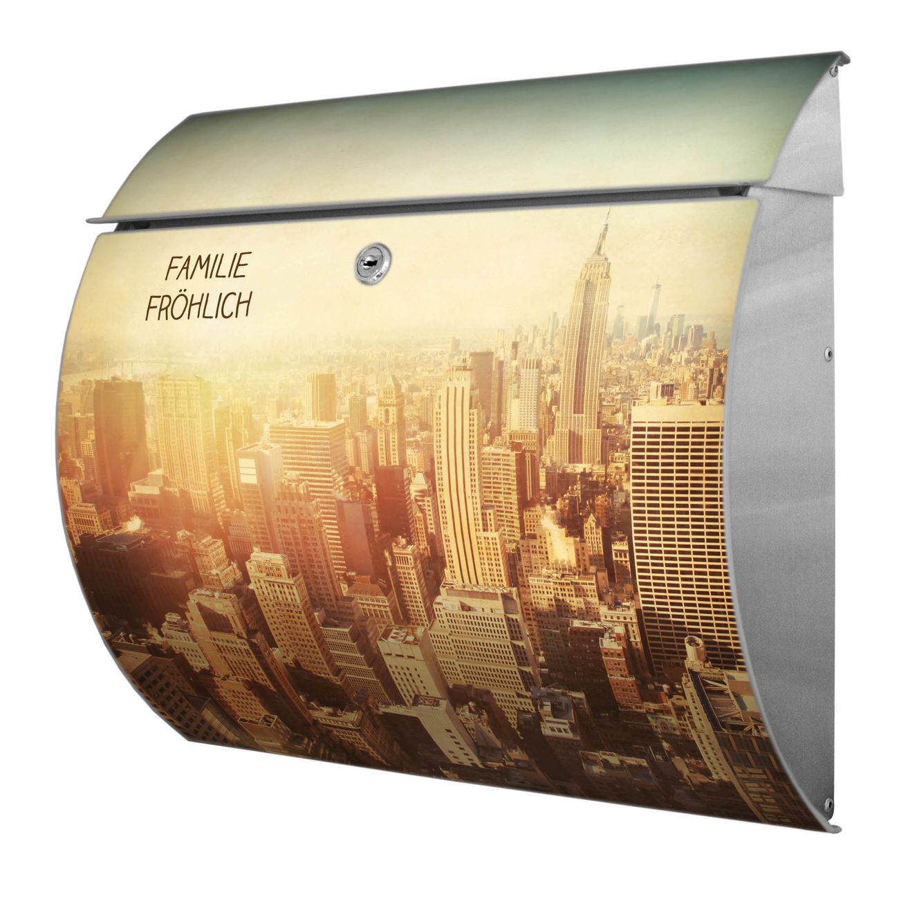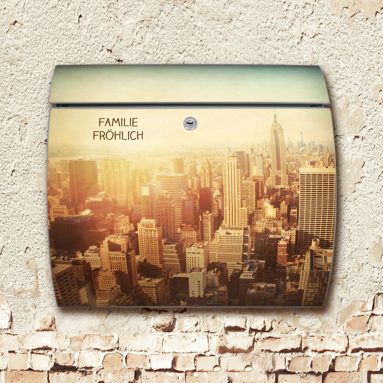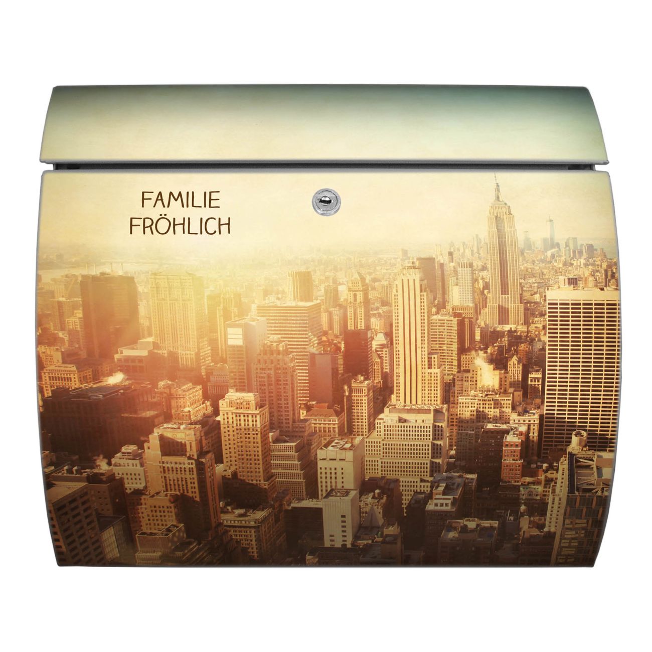 Motiv  Manhattan 2 Nr. 12417 Material  Edelstahl Dekorfolie  UV-beständig, wetterfest Gesamtgröße  37,6x33x10,6cm BxHxT Briefschlitz  32,5x3,5cm BxH Gewicht  ca. 2,30 kg Zubehör  inkl. Öffnungsstopp, Montagezubehör und 2 Schlüssel