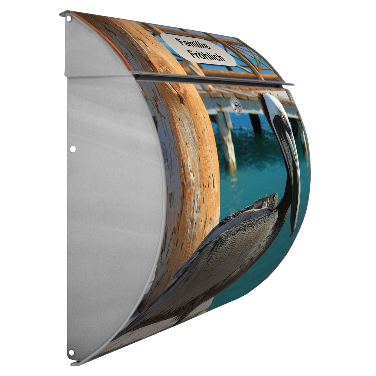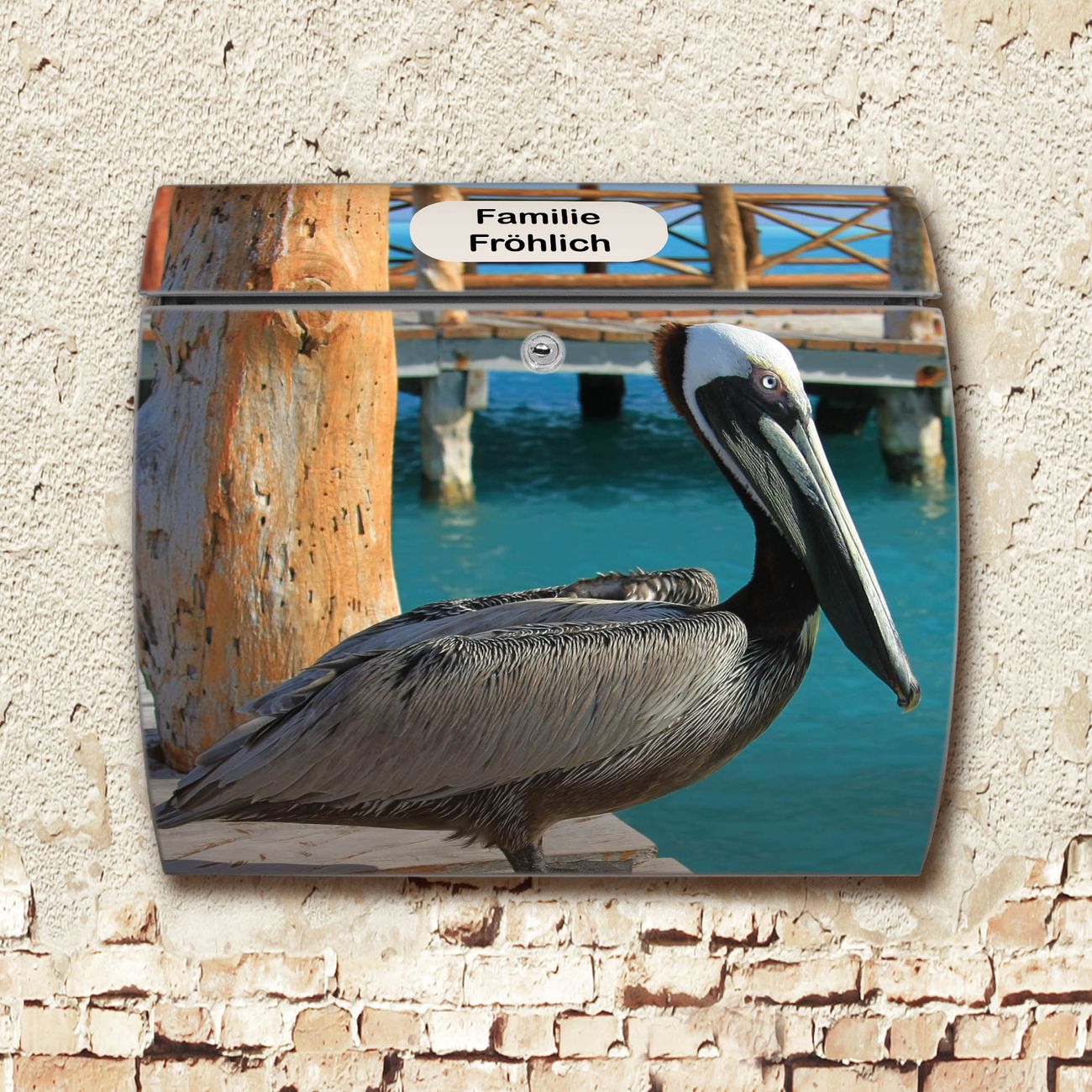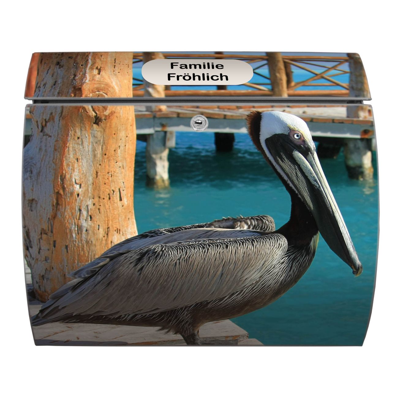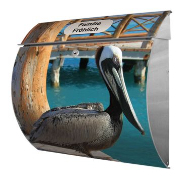 FUNKTION: DESIGN: Das Burg Wächter Modell Toscana mit Motiv Pelikan hat ein sehr ansprechendes und zeitloses Design und ist besonderes wetterfest. Heben Sie Sich von der tristen grauen Masse ab, ohne auf Funktionalität zu verzichten. Wir bieten Ihnen ebenfalls Namensschilder, bereits beschriftet oder frei zu beschriften, und verschiedene selbst gestaltete Bitte-Keine-Werbung-Aufkleber. DETAILS: Der Postkasten besteht aus vollflächig verzinktem Stahl welcher in Anthrazit oder Weiß lackiert wurde oder aus Edelstahl (je nach gewählter Variante). Das Motiv besteht aus einer wetter- und UV-festen Folie, die mit einem Schutzlaminat überzogen ist, durch die Ihren Briefkasten zusätzlich vor Kratzern geschützt ist und auf den Briefkasten kaschiert wurde. Sie erhalten zu Ihrem neuen Design Briefkasten 2 Schlüssel sowie das passende Montagematerial. BANJADO: Ihr Briefkasten wird von Burg Wächter in Deutschland gefertigt und in unserer kleinen Manufaktur von Hand veredelt. Die Motivfolie ist lösungsmittelfrei und schutzlaminiert, dies sorgt für einen langen Halt. Wir legen großen Wert auf die Verbindung von Funktionalität und Design. Sie erhalten besondere Handarbeit aus Sachsen und Made in Germany.