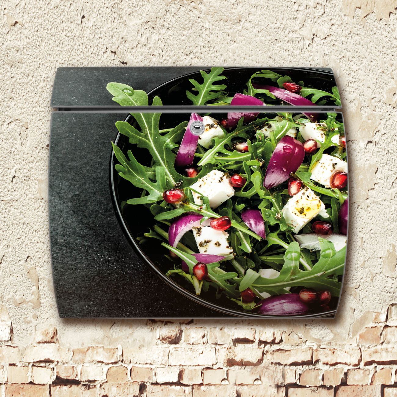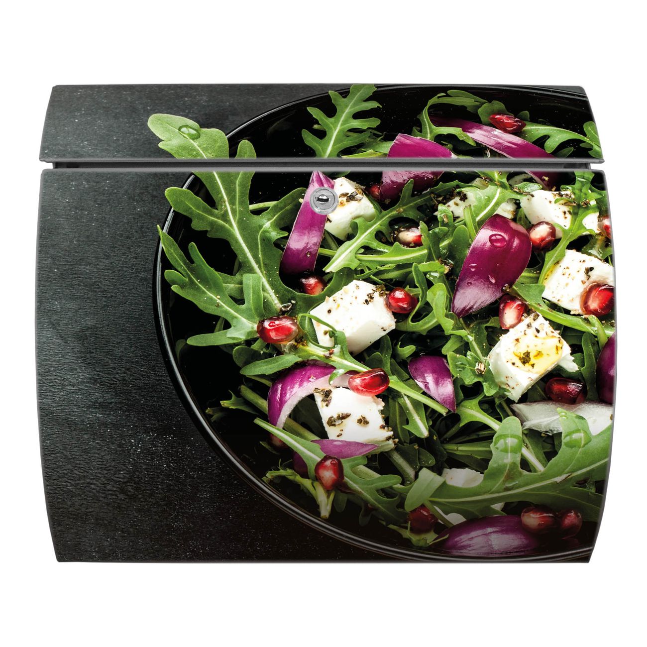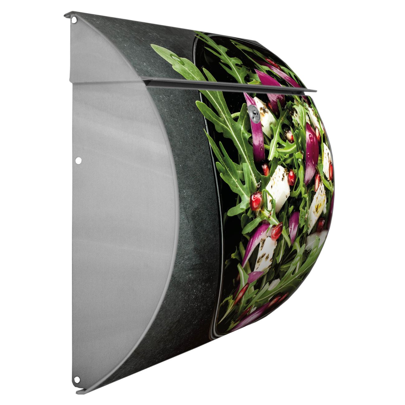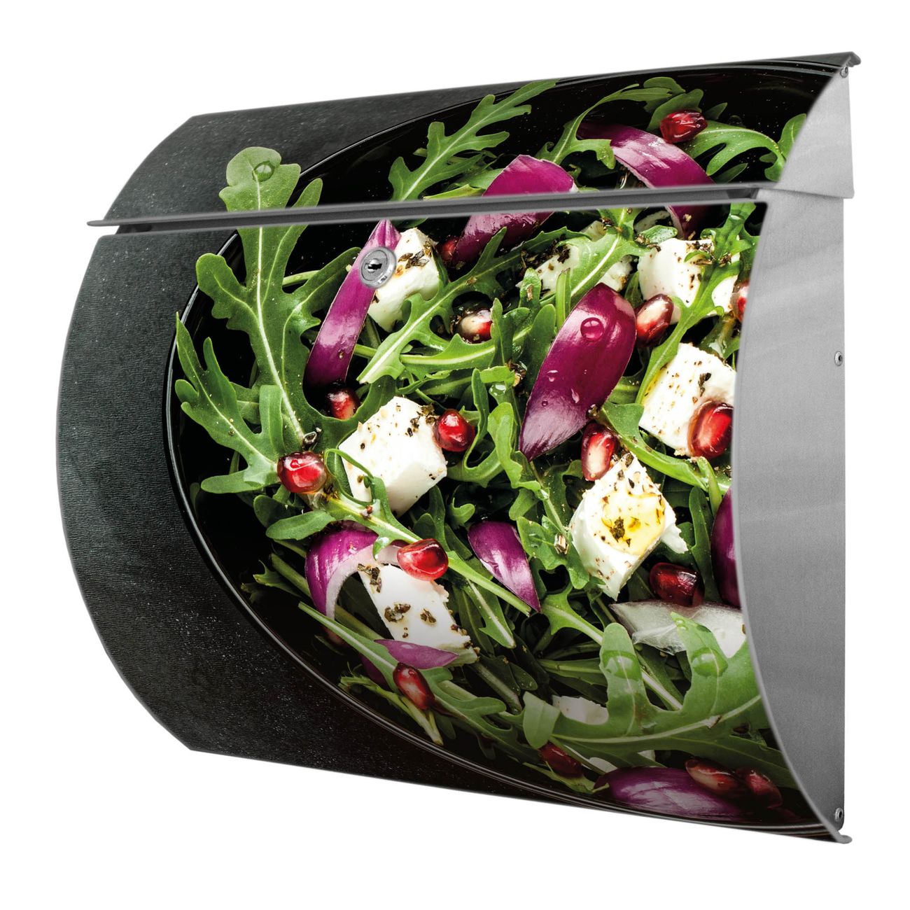 FUNKTION: DESIGN: Das Burg Wächter Modell Toscana mit Motiv Salat hat ein sehr ansprechendes und zeitloses Design und ist besonderes wetterfest. Heben Sie Sich von der tristen grauen Masse ab, ohne auf Funktionalität zu verzichten. Wir bieten Ihnen ebenfalls Namensschilder, bereits beschriftet oder frei zu beschriften, und verschiedene selbst gestaltete Bitte-Keine-Werbung-Aufkleber. DETAILS: Der Postkasten besteht aus vollflächig verzinktem Stahl welcher in Anthrazit oder Weiß lackiert wurde oder aus Edelstahl (je nach gewählter Variante). Das Motiv besteht aus einer wetter- und UV-festen Folie, die mit einem Schutzlaminat überzogen ist, durch die Ihren Briefkasten zusätzlich vor Kratzern geschützt ist und auf den Briefkasten kaschiert wurde. Sie erhalten zu Ihrem neuen Design Briefkasten 2 Schlüssel sowie das passende Montagematerial. BANJADO: Ihr Briefkasten wird von Burg Wächter in Deutschland gefertigt und in unserer kleinen Manufaktur von Hand veredelt. Die Motivfolie ist lösungsmittelfrei und schutzlaminiert, dies sorgt für einen langen Halt. Wir legen großen Wert auf die Verbindung von Funktionalität und Design. Sie erhalten besondere Handarbeit aus Sachsen und Made in Germany.