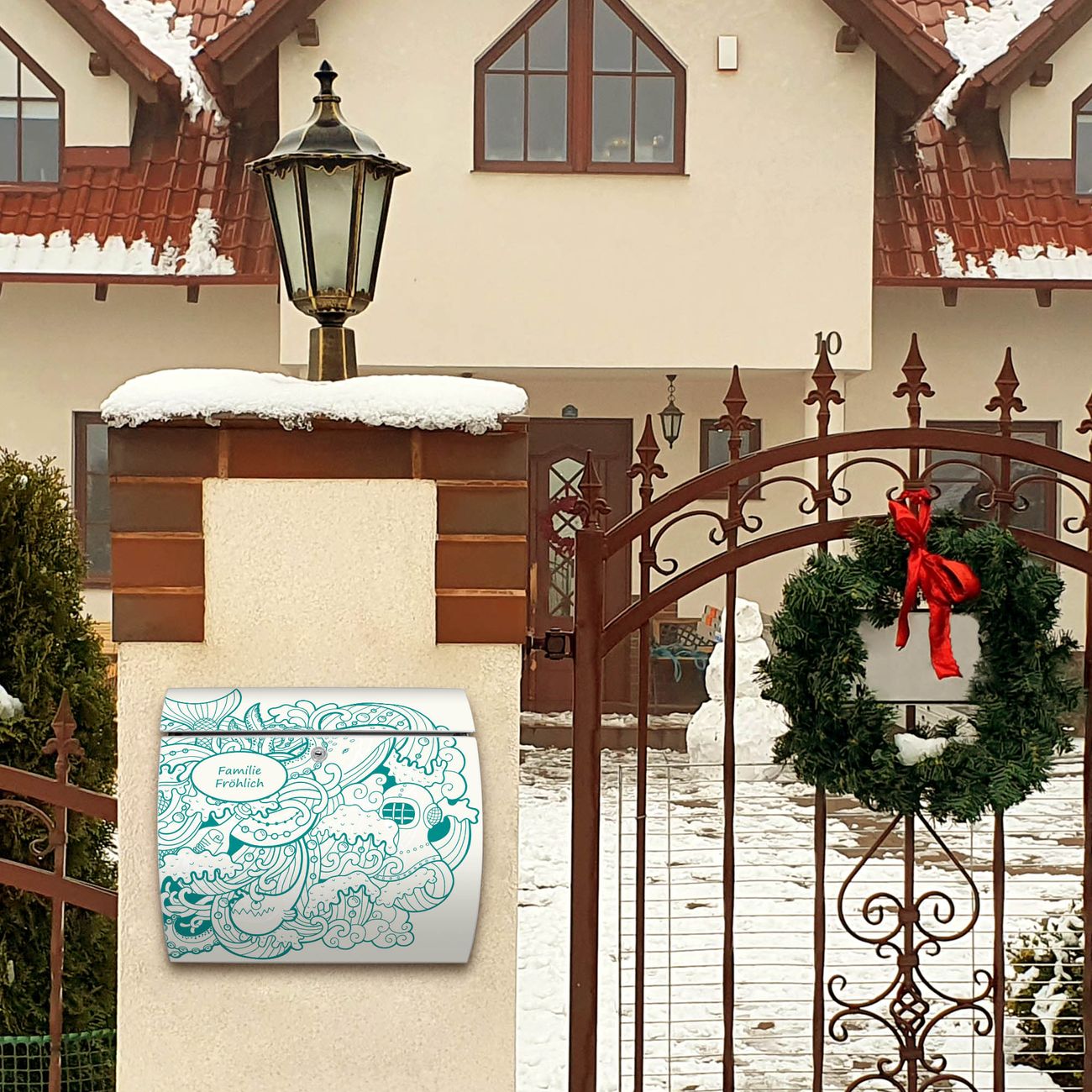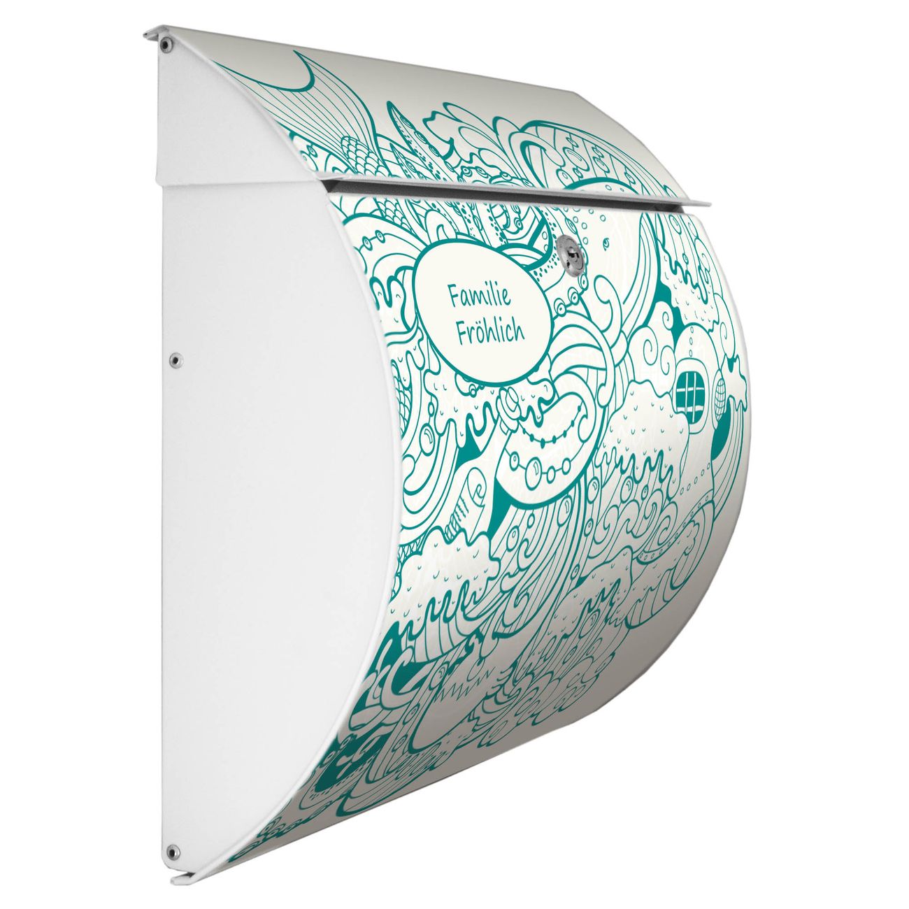 FUNKTION: DESIGN: Das Burg Wächter Modell Toscana mit Motiv Tiefsee hat ein sehr ansprechendes und zeitloses Design und ist besonderes wetterfest. Heben Sie Sich von der tristen grauen Masse ab, ohne auf Funktionalität zu verzichten. Wir bieten Ihnen ebenfalls Namensschilder, bereits beschriftet oder frei zu beschriften, und verschiedene selbst gestaltete Bitte-Keine-Werbung-Aufkleber. DETAILS: Der Postkasten besteht aus vollflächig verzinktem Stahl welcher in Anthrazit oder Weiß lackiert wurde oder aus Edelstahl (je nach gewählter Variante). Das Motiv besteht aus einer wetter- und UV-festen Folie, die mit einem Schutzlaminat überzogen ist, durch die Ihren Briefkasten zusätzlich vor Kratzern geschützt ist und auf den Briefkasten kaschiert wurde. Sie erhalten zu Ihrem neuen Design Briefkasten 2 Schlüssel sowie das passende Montagematerial. BANJADO: Ihr Briefkasten wird von Burg Wächter in Deutschland gefertigt und in unserer kleinen Manufaktur von Hand veredelt. Die Motivfolie ist lösungsmittelfrei und schutzlaminiert, dies sorgt für einen langen Halt. Wir legen großen Wert auf die Verbindung von Funktionalität und Design. Sie erhalten besondere Handarbeit aus Sachsen und Made in Germany.