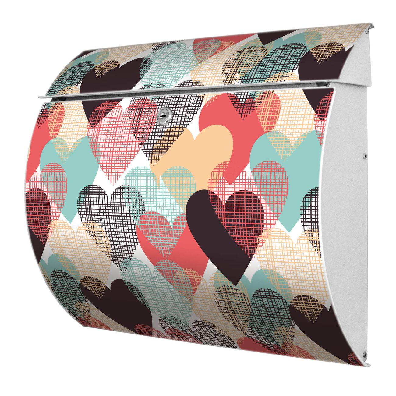Der geschwungene Burg Wächter Briefkasten Toscana mit Motiv Unter Herzen bietet Ihnen mit seinem großen Fassungsvermögen genügend Platz auch für große A4 Sendungen. Auf Wunsch können Sie bei uns den passenden Standfuß bestellen und so aus dem Wandbriefkasten einen Standbriefkasten machen. Der integrierte Öffnungsstopp ermöglicht eine einfache Handhabung beim Entnehmen der Post.