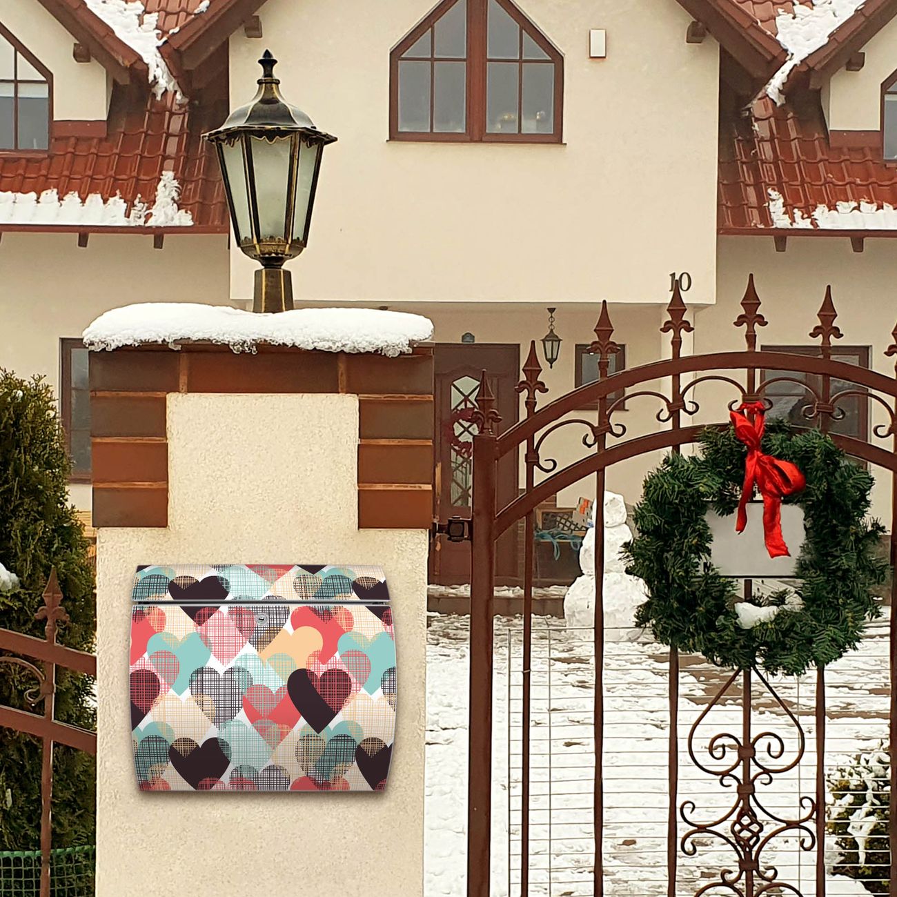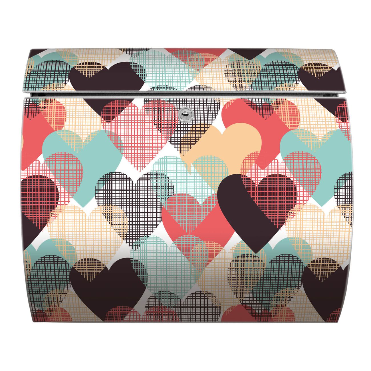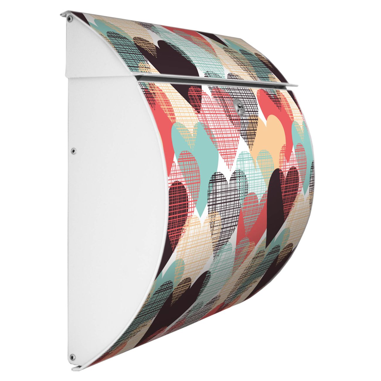 FUNKTION: DESIGN: Das Burg Wächter Modell Toscana mit Motiv Unter Herzen hat ein sehr ansprechendes und zeitloses Design und ist besonderes wetterfest. Heben Sie Sich von der tristen grauen Masse ab, ohne auf Funktionalität zu verzichten. Wir bieten Ihnen ebenfalls Namensschilder, bereits beschriftet oder frei zu beschriften, und verschiedene selbst gestaltete Bitte-Keine-Werbung-Aufkleber. DETAILS: Der Postkasten besteht aus vollflächig verzinktem Stahl welcher in Anthrazit oder Weiß lackiert wurde oder aus Edelstahl (je nach gewählter Variante). Das Motiv besteht aus einer wetter- und UV-festen Folie, die mit einem Schutzlaminat überzogen ist, durch die Ihren Briefkasten zusätzlich vor Kratzern geschützt ist und auf den Briefkasten kaschiert wurde. Sie erhalten zu Ihrem neuen Design Briefkasten 2 Schlüssel sowie das passende Montagematerial. BANJADO: Ihr Briefkasten wird von Burg Wächter in Deutschland gefertigt und in unserer kleinen Manufaktur von Hand veredelt. Die Motivfolie ist lösungsmittelfrei und schutzlaminiert, dies sorgt für einen langen Halt. Wir legen großen Wert auf die Verbindung von Funktionalität und Design. Sie erhalten besondere Handarbeit aus Sachsen und Made in Germany.