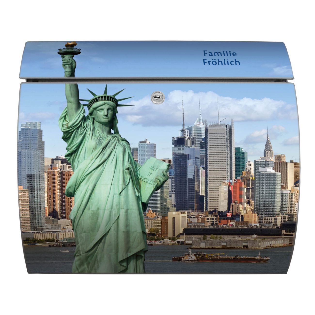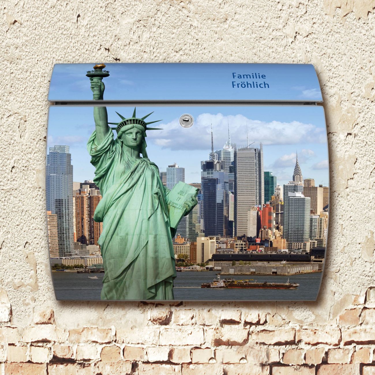 FUNKTION: DESIGN: Das Burg Wächter Modell Toscana mit Motiv Welcome To NY hat ein sehr ansprechendes und zeitloses Design und ist besonderes wetterfest. Heben Sie Sich von der tristen grauen Masse ab, ohne auf Funktionalität zu verzichten. Wir bieten Ihnen ebenfalls Namensschilder, bereits beschriftet oder frei zu beschriften, und verschiedene selbst gestaltete Bitte-Keine-Werbung-Aufkleber. DETAILS: Der Postkasten besteht aus vollflächig verzinktem Stahl welcher in Anthrazit oder Weiß lackiert wurde oder aus Edelstahl (je nach gewählter Variante). Das Motiv besteht aus einer wetter- und UV-festen Folie, die mit einem Schutzlaminat überzogen ist, durch die Ihren Briefkasten zusätzlich vor Kratzern geschützt ist und auf den Briefkasten kaschiert wurde. Sie erhalten zu Ihrem neuen Design Briefkasten 2 Schlüssel sowie das passende Montagematerial. BANJADO: Ihr Briefkasten wird von Burg Wächter in Deutschland gefertigt und in unserer kleinen Manufaktur von Hand veredelt. Die Motivfolie ist lösungsmittelfrei und schutzlaminiert, dies sorgt für einen langen Halt. Wir legen großen Wert auf die Verbindung von Funktionalität und Design. Sie erhalten besondere Handarbeit aus Sachsen und Made in Germany.