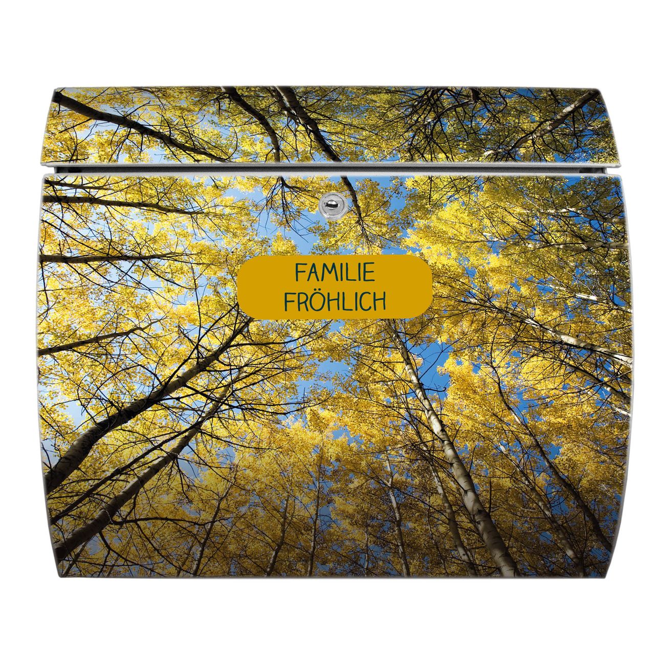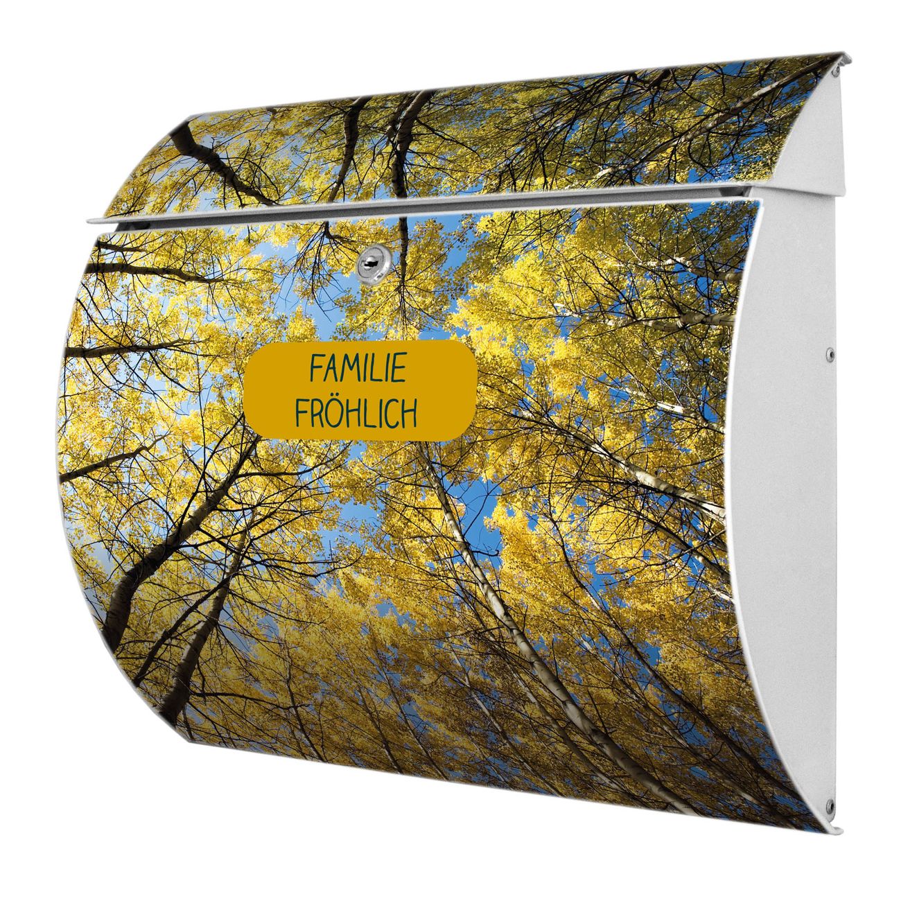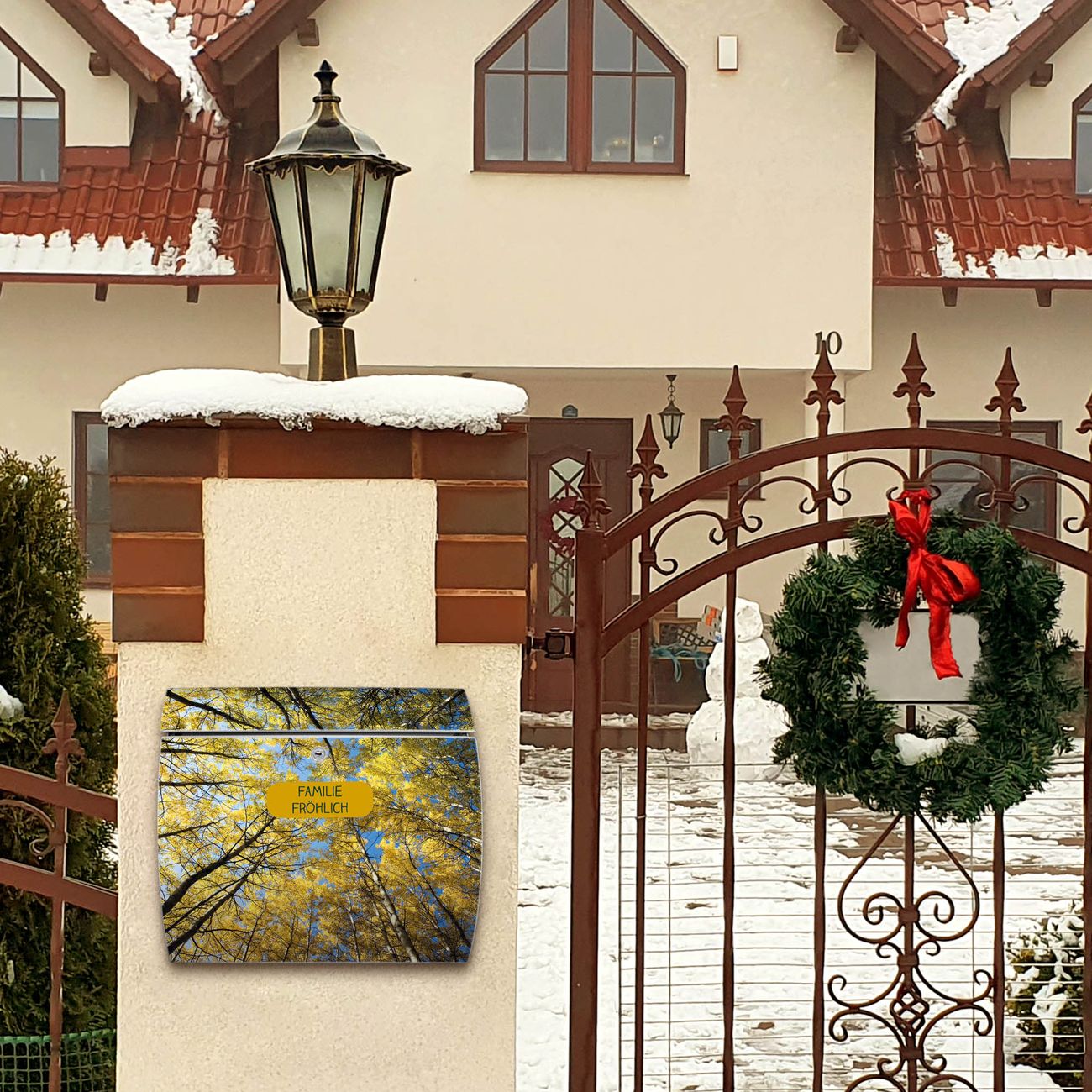 FUNKTION: DESIGN: Das Burg Wächter Modell Toscana mit Motiv Wipfel hat ein sehr ansprechendes und zeitloses Design und ist besonderes wetterfest. Heben Sie Sich von der tristen grauen Masse ab, ohne auf Funktionalität zu verzichten. Wir bieten Ihnen ebenfalls Namensschilder, bereits beschriftet oder frei zu beschriften, und verschiedene selbst gestaltete Bitte-Keine-Werbung-Aufkleber. DETAILS: Der Postkasten besteht aus vollflächig verzinktem Stahl welcher in Anthrazit oder Weiß lackiert wurde oder aus Edelstahl (je nach gewählter Variante). Das Motiv besteht aus einer wetter- und UV-festen Folie, die mit einem Schutzlaminat überzogen ist, durch die Ihren Briefkasten zusätzlich vor Kratzern geschützt ist und auf den Briefkasten kaschiert wurde. Sie erhalten zu Ihrem neuen Design Briefkasten 2 Schlüssel sowie das passende Montagematerial. BANJADO: Ihr Briefkasten wird von Burg Wächter in Deutschland gefertigt und in unserer kleinen Manufaktur von Hand veredelt. Die Motivfolie ist lösungsmittelfrei und schutzlaminiert, dies sorgt für einen langen Halt. Wir legen großen Wert auf die Verbindung von Funktionalität und Design. Sie erhalten besondere Handarbeit aus Sachsen und Made in Germany.