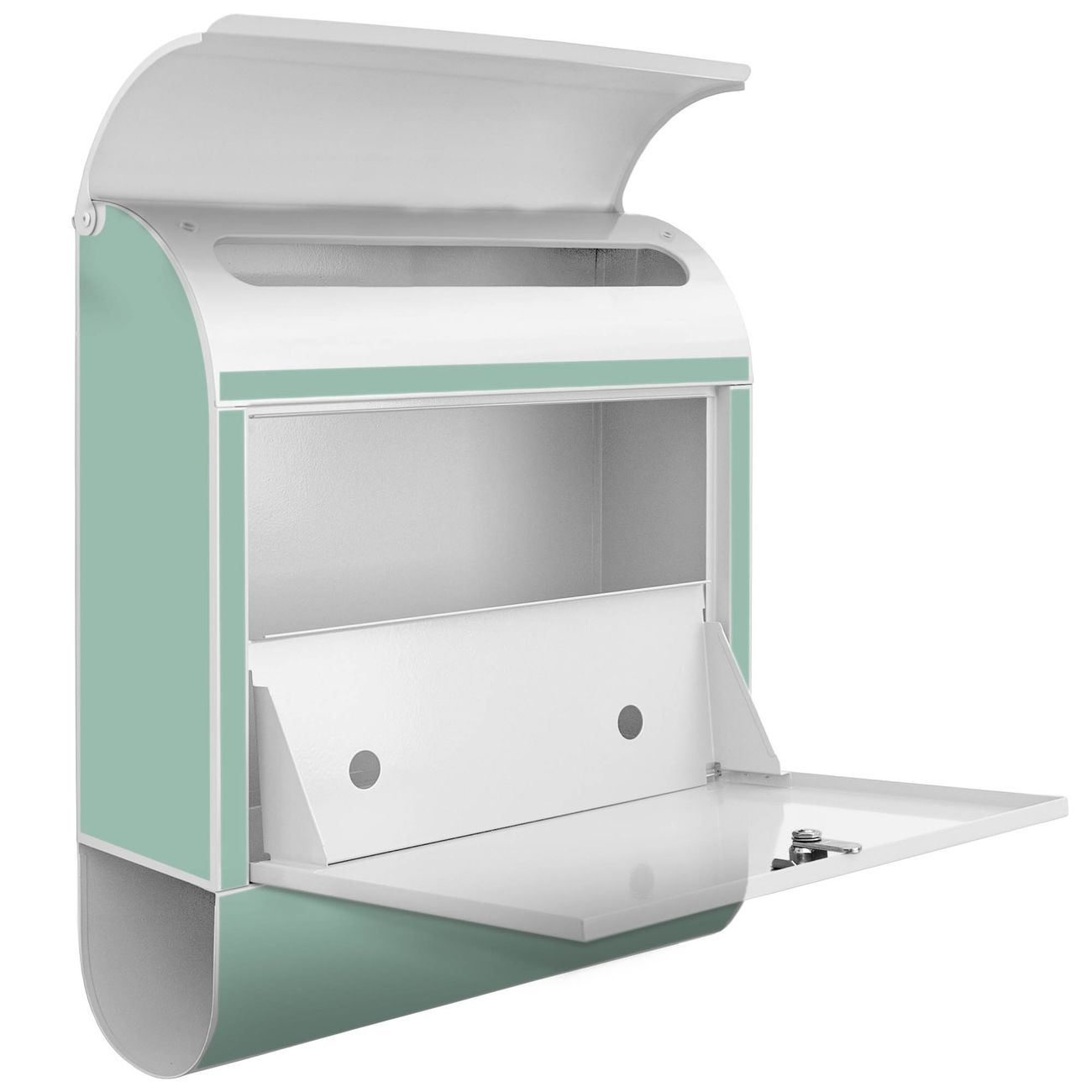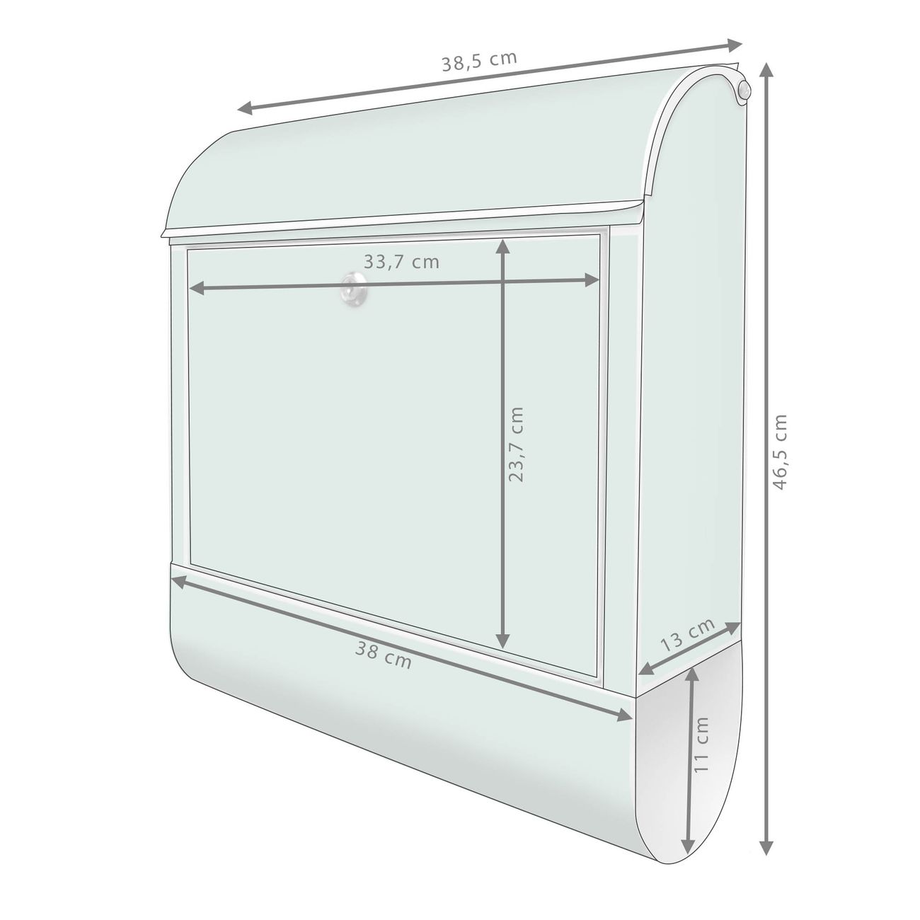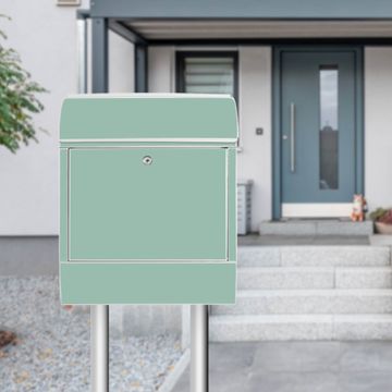 Der banjado Standbriefkasten mit Motiv Farbe Salbei kombiniert großzügigen Stauraum mit modernem Design. Durch das geräumige Fach finden auch große A4-Sendungen problemlos Platz. Die integrierte Zeitungsrolle sorgt dafür, dass Tageszeitungen und Magazine separat und griffbereit untergebracht sind. Der pulverbeschichtete Standfuß ist farblich passend zum Briefkasten gestaltet und sorgt für ein stimmiges Gesamtbild. Mit dem individuellen Motiv setzen Sie einen optischen Akzent, der sowohl praktisch als auch dekorativ ist.