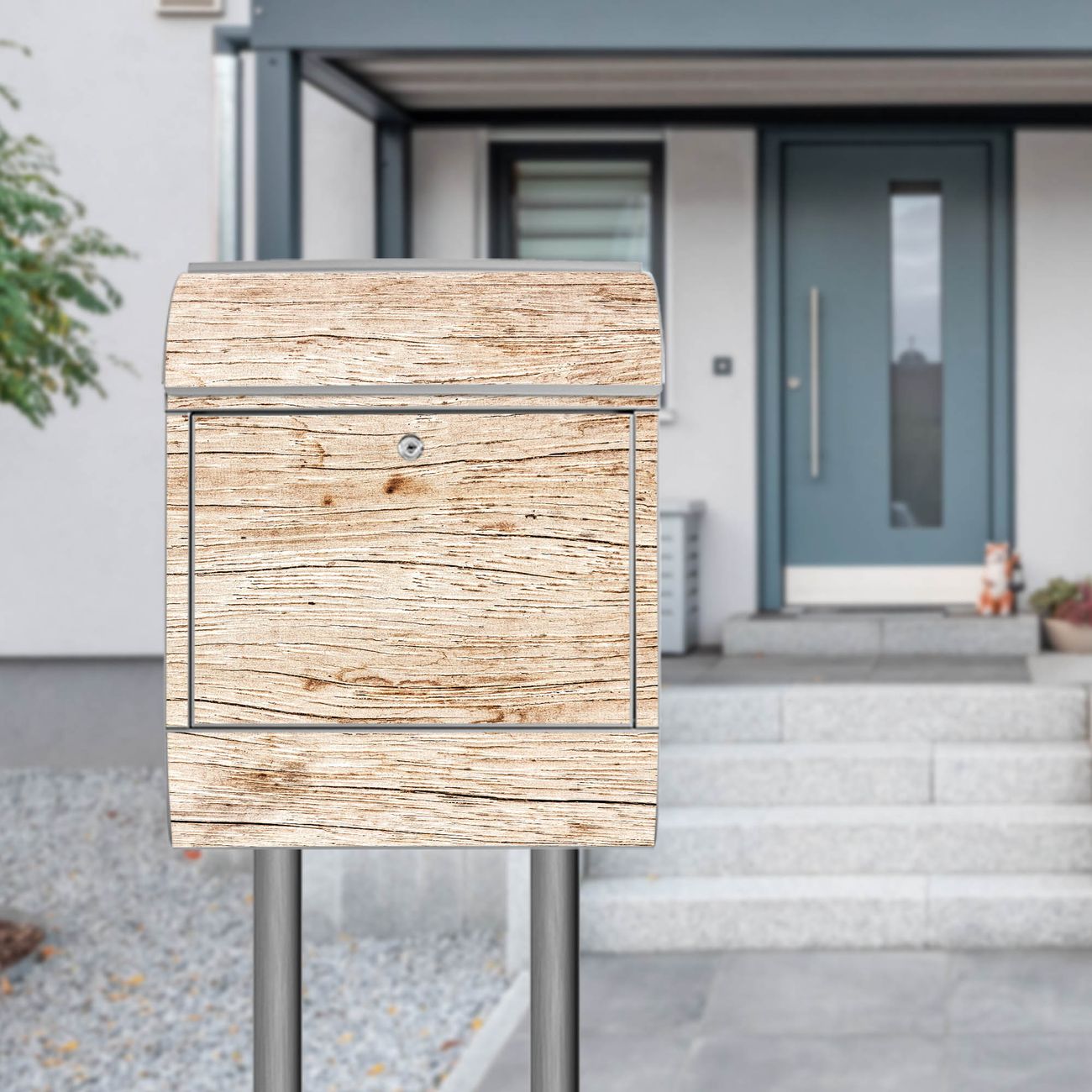 Standbriefkasten Stahl Motiv Holz Struktur Hell