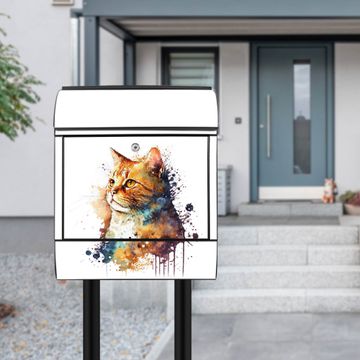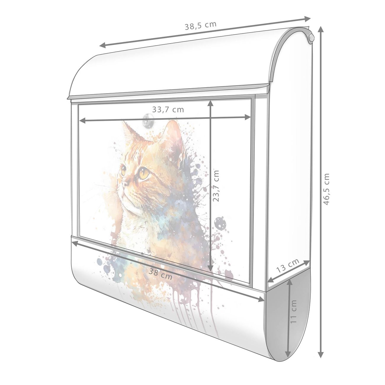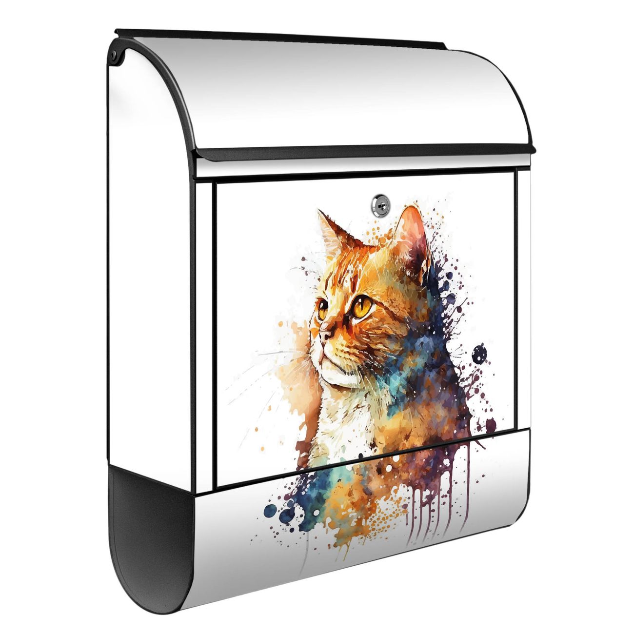 Standbriefkasten Stahl Motiv Katzenportrait in Aquarell 1