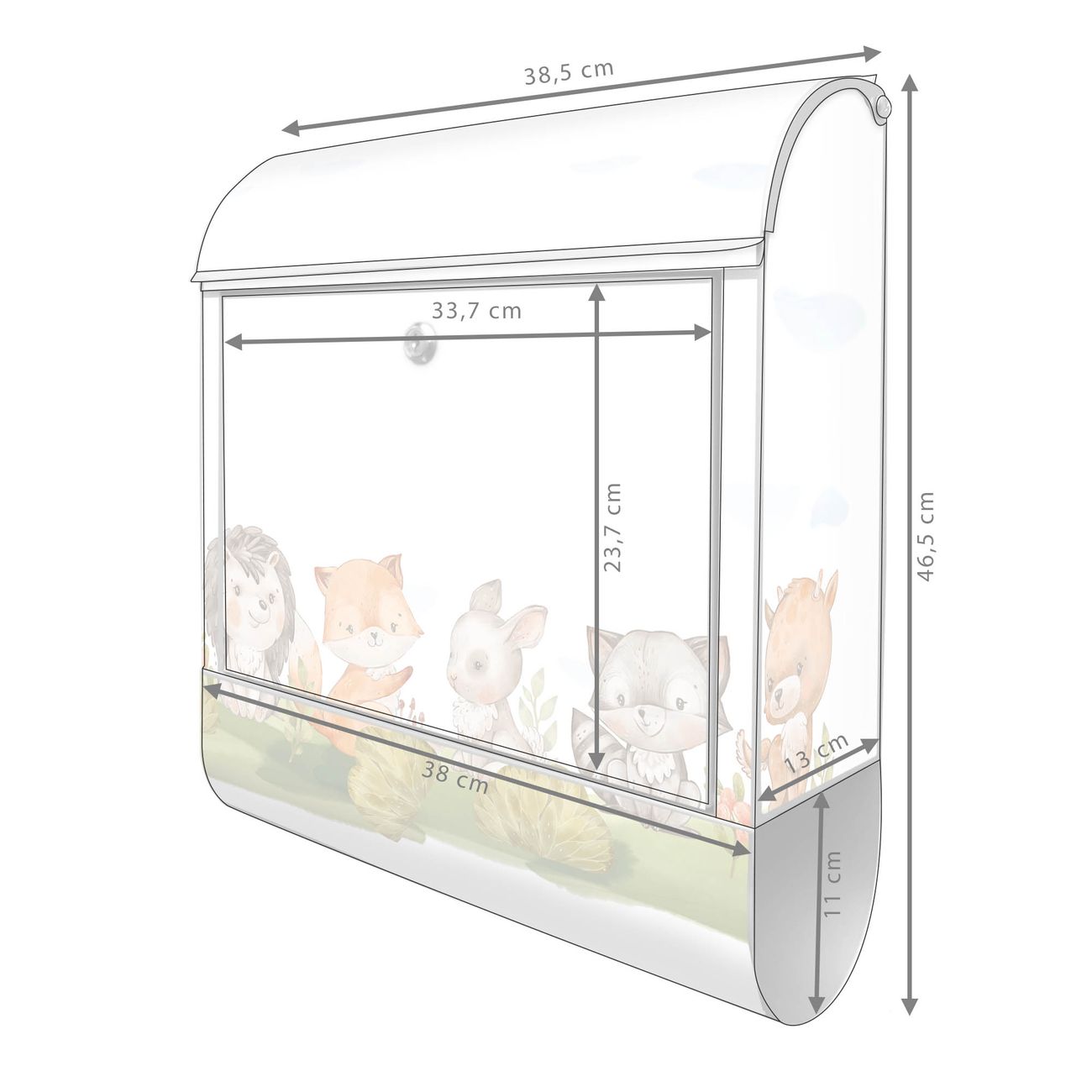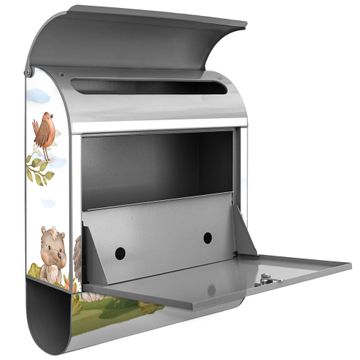 Der banjado Standbriefkasten mit Motiv Motiv Waldfreunde 2 kombiniert großzügigen Stauraum mit modernem Design. Durch das geräumige Fach finden auch große A4-Sendungen problemlos Platz. Die integrierte Zeitungsrolle sorgt dafür, dass Tageszeitungen und Magazine separat und griffbereit untergebracht sind. Der pulverbeschichtete Standfuß ist farblich passend zum Briefkasten gestaltet und sorgt für ein stimmiges Gesamtbild. Mit dem individuellen Motiv setzen Sie einen optischen Akzent, der sowohl praktisch als auch dekorativ ist.