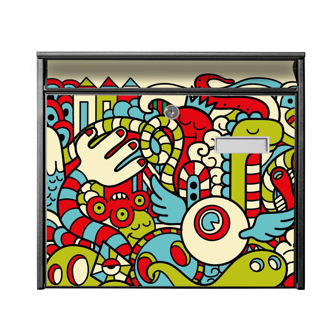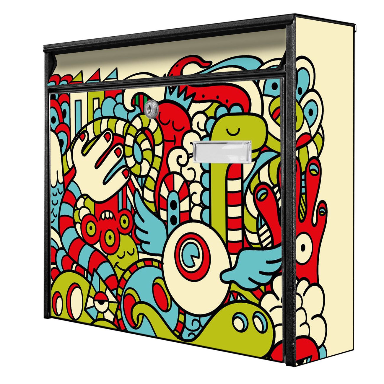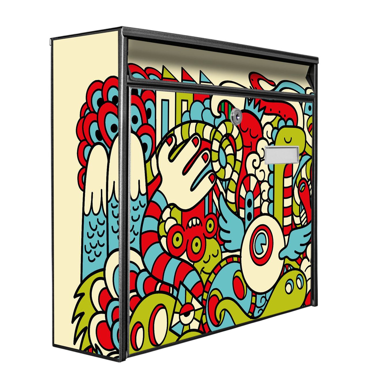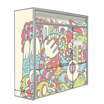 Die Größe des Briefkastens ist 36 x 32 x 10cm (BxHxT) groß. Das Motiv besteht aus einer wetter- und UV-festen Folie, die mit einem Schutzlaminat überzogen ist und Ihren Briefkasten zusätzlich vor Kratzern schützt. Sie erhalten 2 Schlüssel sowie das Montagematerial.