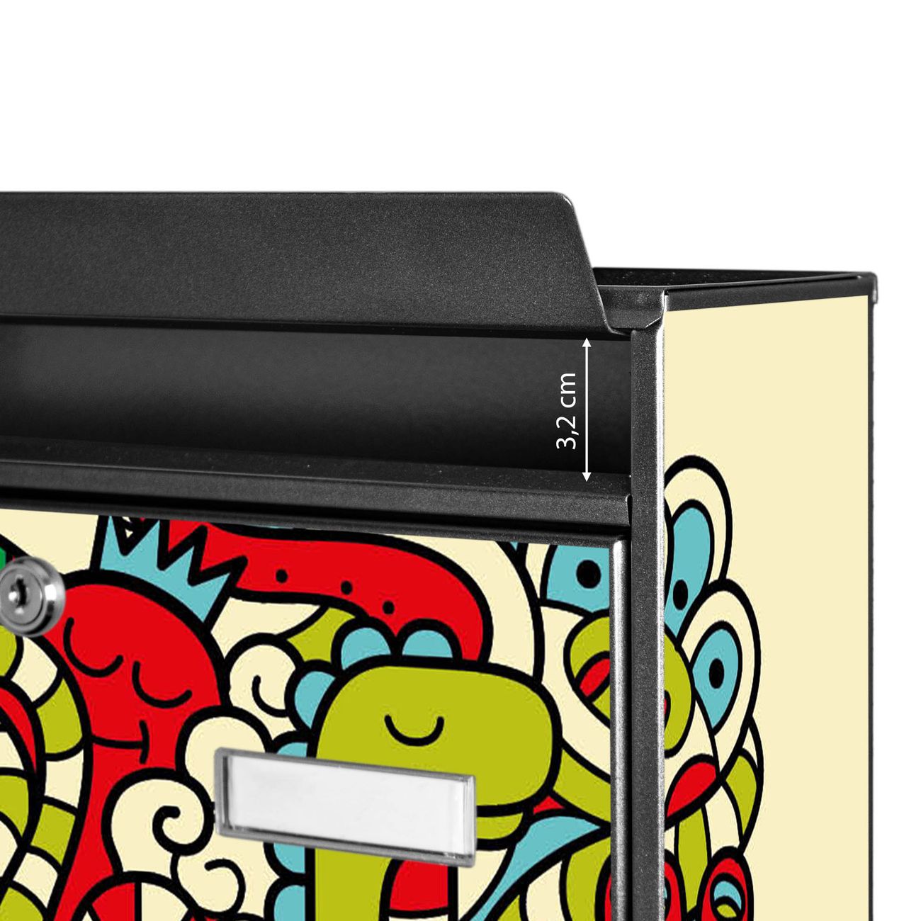 Der Burg Wächter Mail Briefkasten mit Motiv Birds Worms Freaks bietet Ihnen mit seinem Fassungsvermögen genügend Platz auch für große A4 Sendungen. Auf Wunsch können Sie bei uns den passenden Standfuß kaufen und so aus dem Wandbriefkasten einen Standbriefkasten machen. Wir bieten Ihnen ebenfalls Namensschilder, bereits beschriftet oder frei zu beschriften, und verschiedene selbst gestaltete Bitte-Keine-Werbung-Aufkleber.
