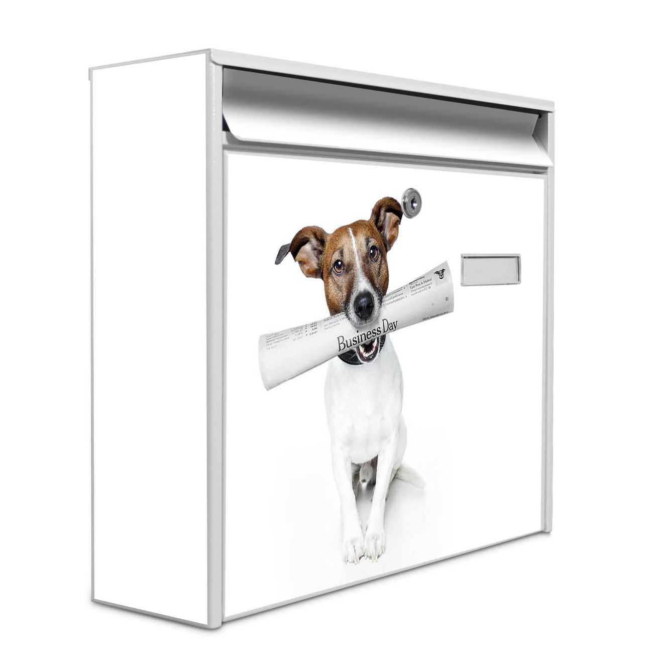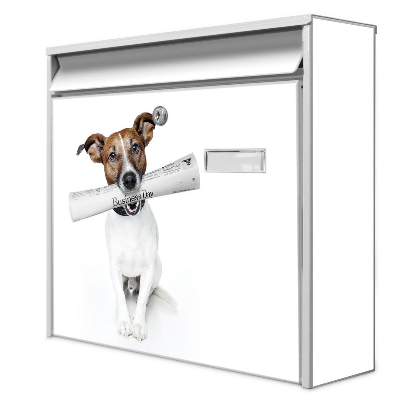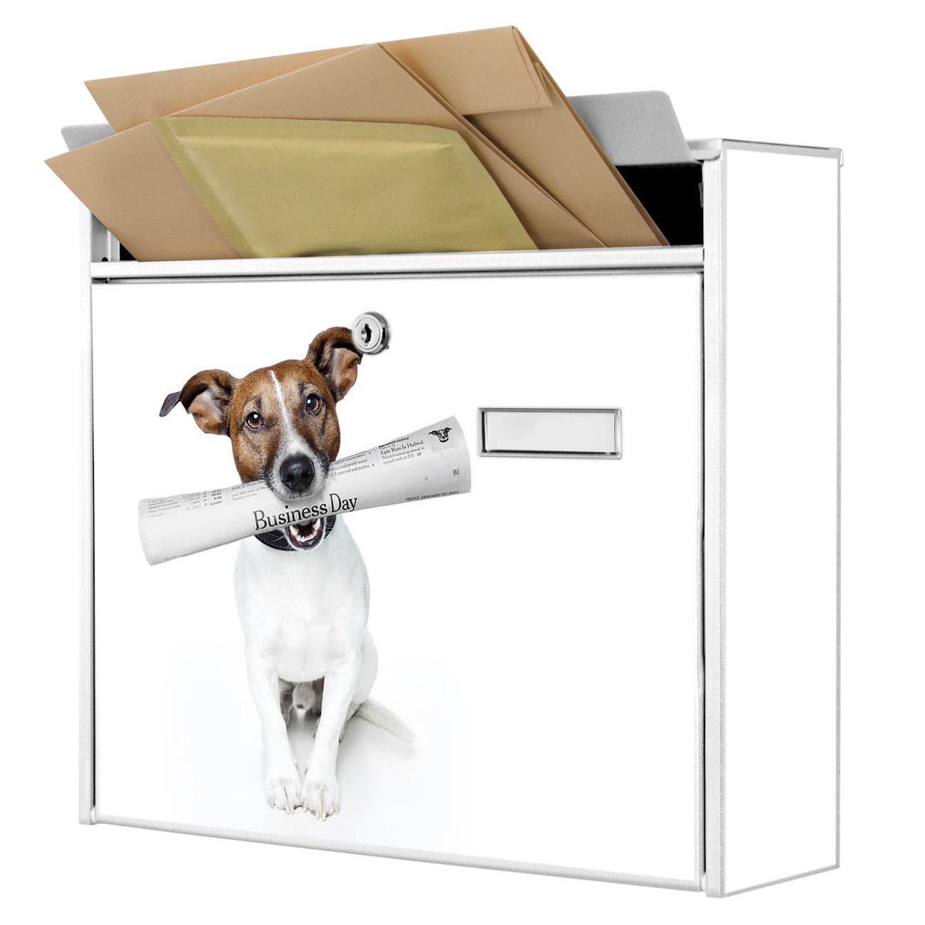 Der Burg Wächter Mail Briefkasten mit Motiv Business Day bietet Ihnen mit seinem Fassungsvermögen genügend Platz auch für große A4 Sendungen. Auf Wunsch können Sie bei uns den passenden Standfuß kaufen und so aus dem Wandbriefkasten einen Standbriefkasten machen. Wir bieten Ihnen ebenfalls Namensschilder, bereits beschriftet oder frei zu beschriften, und verschiedene selbst gestaltete Bitte-Keine-Werbung-Aufkleber.
