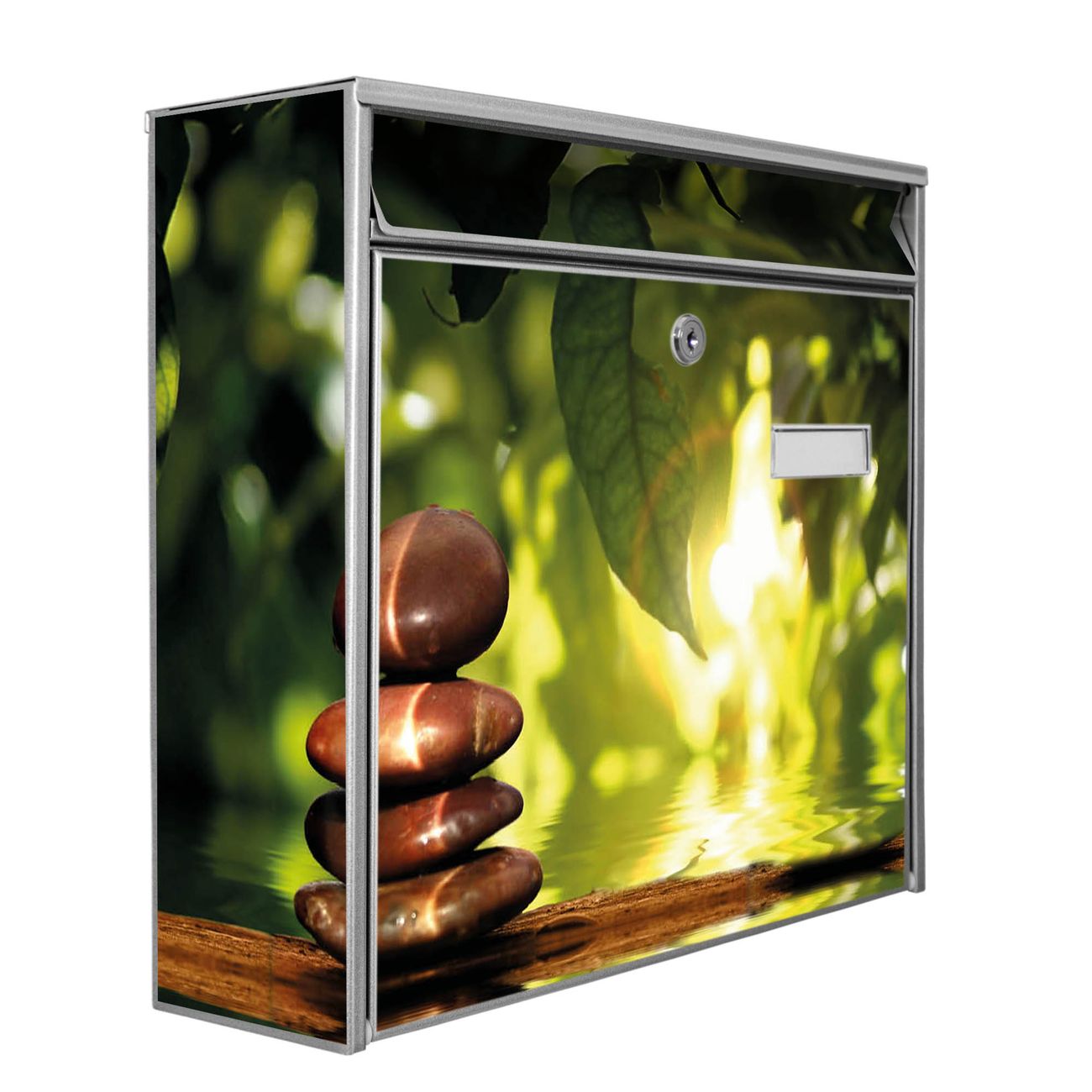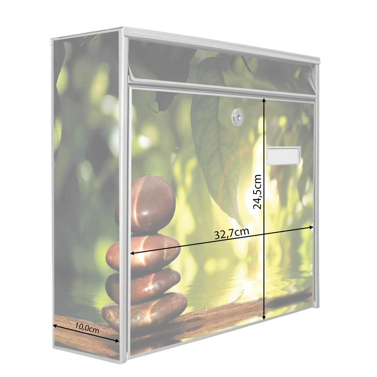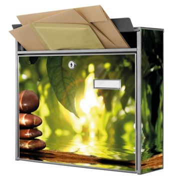 Der Postkasten mit Motiv Feng Shui hat ein sehr ansprechendes und zeitloses Design. Heben Sie Sich von der tristen grauen Masse ab, ohne auf Funktionalität zu verzichten. Die weite Öffnung ohne scharfe Kanten ermöglicht eine einfache Handhabung beim Entnehmen der Post. Die Größe bietet genügend Platz für Sendungen aller Art, der Einwurf fasst auch größere A4 Sendungen. Ihr Burg-Wächter Motivbriefkasten wird in Sachsen in einer kleinen Manufaktur von Hand veredelt. Die Motivfolie ist lösungsmittelfrei und schutzlaminiert, dies sorgt für einen langen Halt. Wir legen großen Wert auf die Verbindung von Funktionalität und Design.