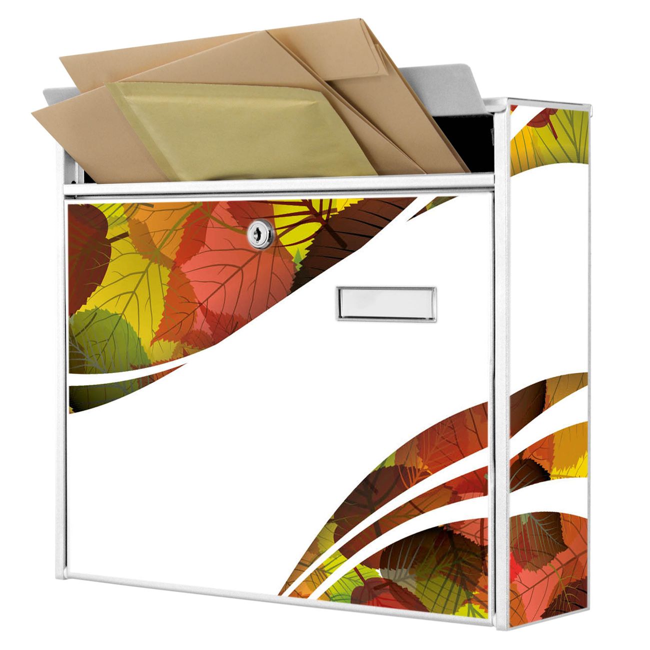 Der Burg Wächter Mail Briefkasten mit Motiv Herbstlaub bietet Ihnen mit seinem Fassungsvermögen genügend Platz auch für große A4 Sendungen. Auf Wunsch können Sie bei uns den passenden Standfuß kaufen und so aus dem Wandbriefkasten einen Standbriefkasten machen. Wir bieten Ihnen ebenfalls Namensschilder, bereits beschriftet oder frei zu beschriften, und verschiedene selbst gestaltete Bitte-Keine-Werbung-Aufkleber.