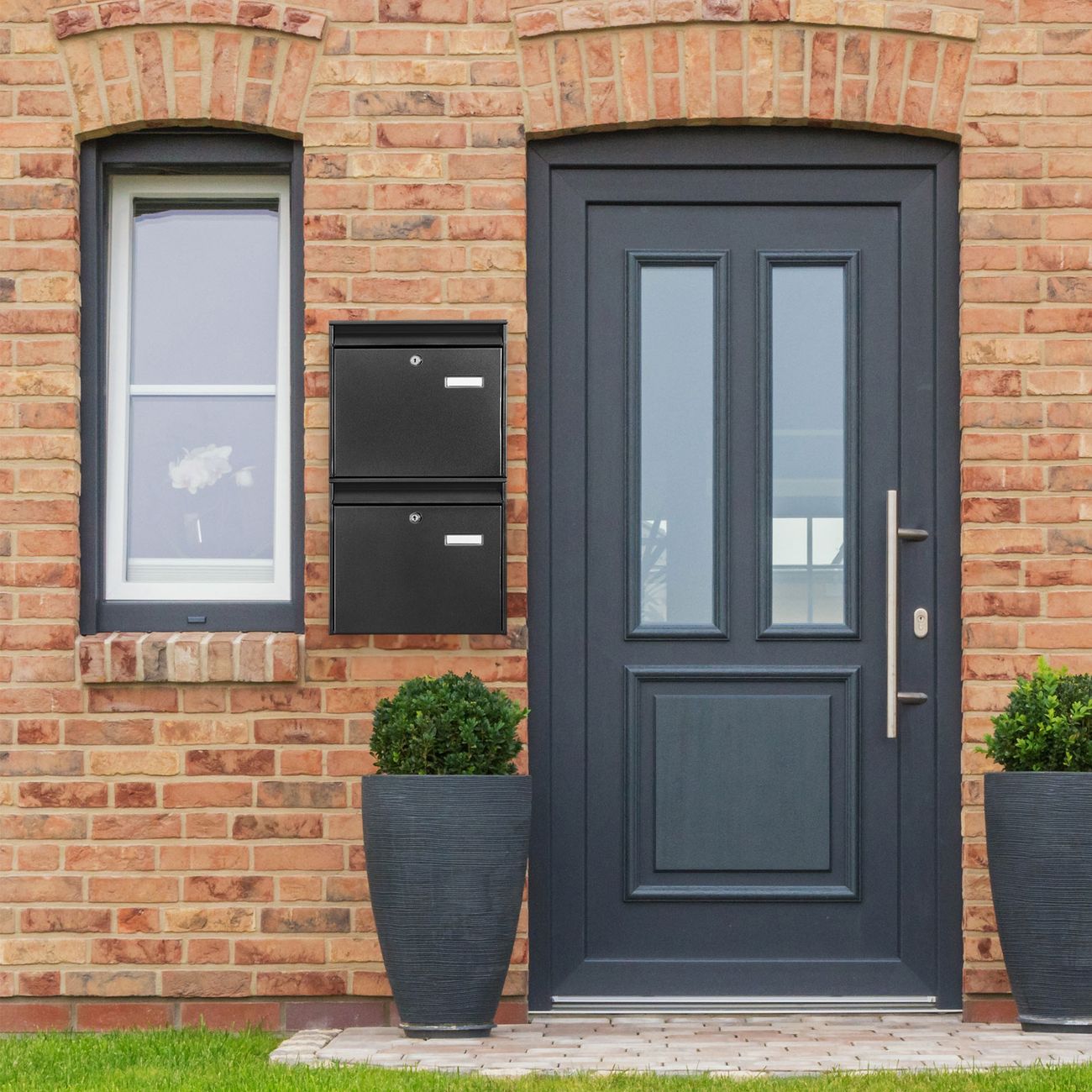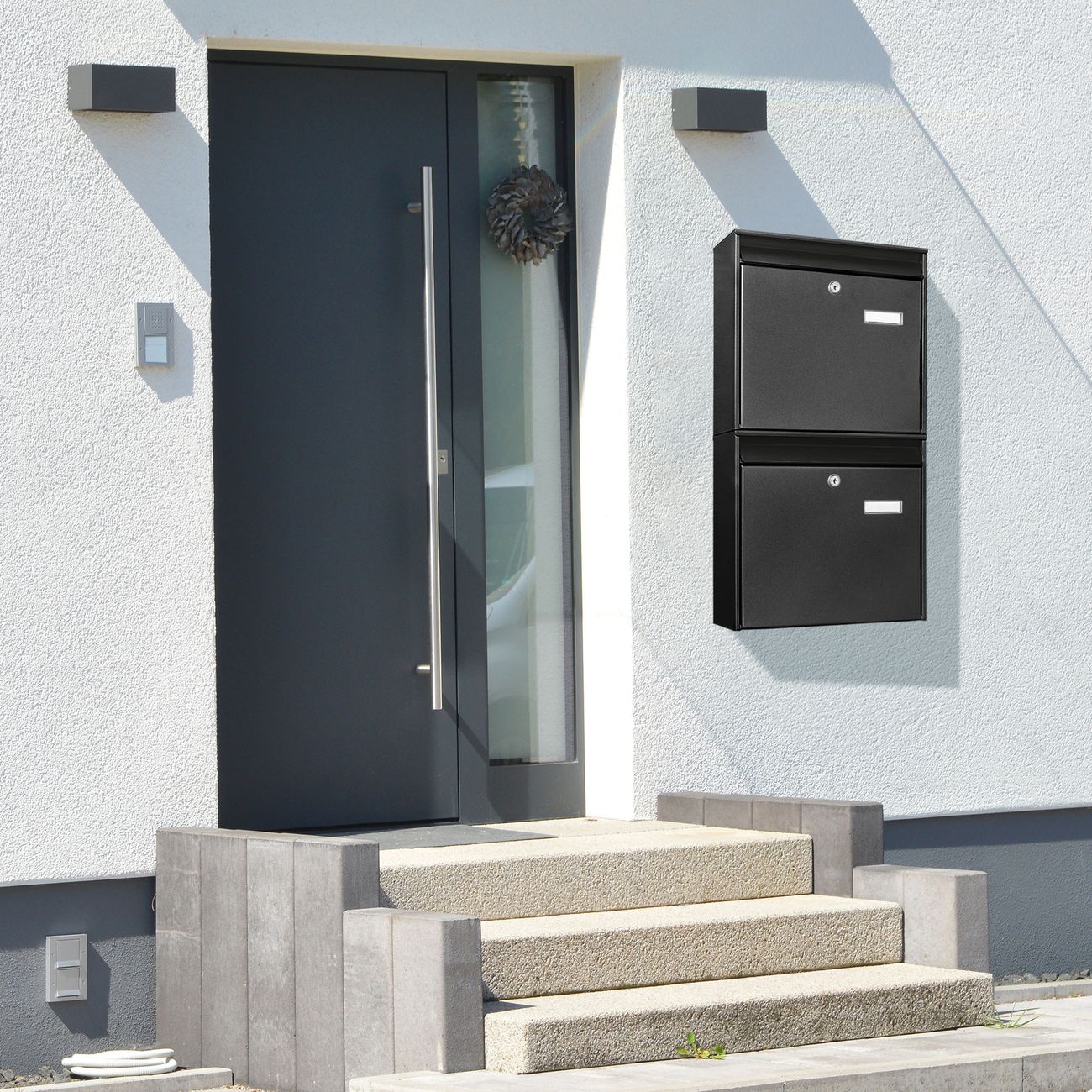 Die Briefkastenanlage besteht aus 2 einzelnen Briefkästen und ist komplett 36,2 x 64,5 x 10cm groß, besteht aus schwarz pulverbeschichtetem Stahl und wiegt zusammen ca. 6kg. Da die Briefkästen einzeln angebracht werden, können Sie frei wählen, wie diese hängen sollen. Sie erhalten zu jedem einzelnen Kasten zwei Schlüssel sowie passendes Montagematerial.
