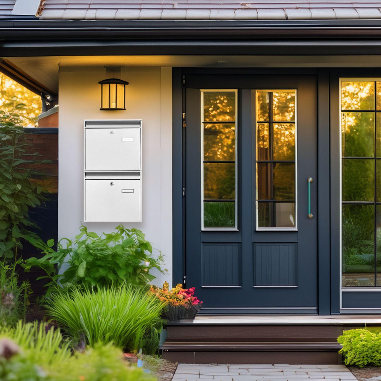 Die Briefkastenanlage besteht aus 2 einzelnen Briefkästen und ist komplett 36,2 x 64,5 x 10cm groß, besteht aus weiß pulverbeschichtetem Stahl und wiegt zusammen ca. 6kg. Da die Briefkästen einzeln angebracht werden, können Sie frei wählen, wie diese hängen sollen. Sie erhalten zu jedem einzelnen Kasten zwei Schlüssel sowie passendes Montagematerial.