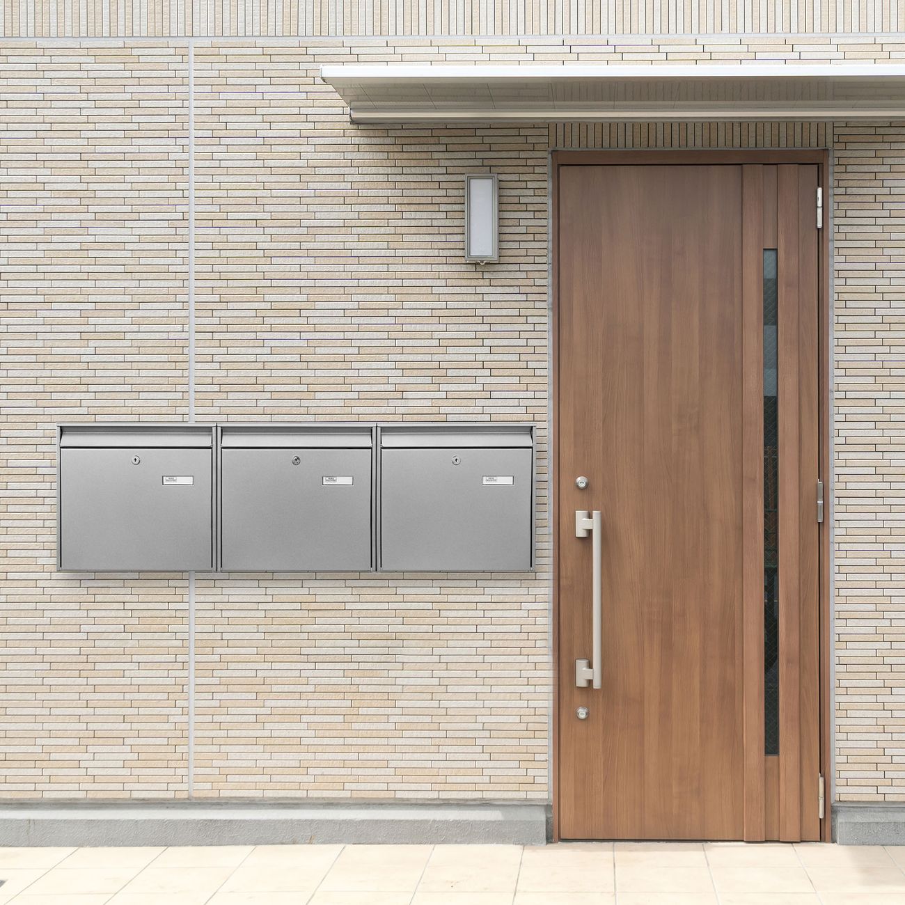 Die Briefkastenanlage besteht aus 3 einzelnen Briefkästen und ist komplett 108,8 x 32,2 x 10cm groß, besteht aus silber-grau pulverbeschichtetem Stahl und wiegt zusammen ca. 9kg. Da die Briefkästen einzeln angebracht werden, können Sie frei wählen, wie diese hängen sollen. Sie erhalten zu jedem einzelnen Kasten zwei Schlüssel sowie passendes Montagematerial.