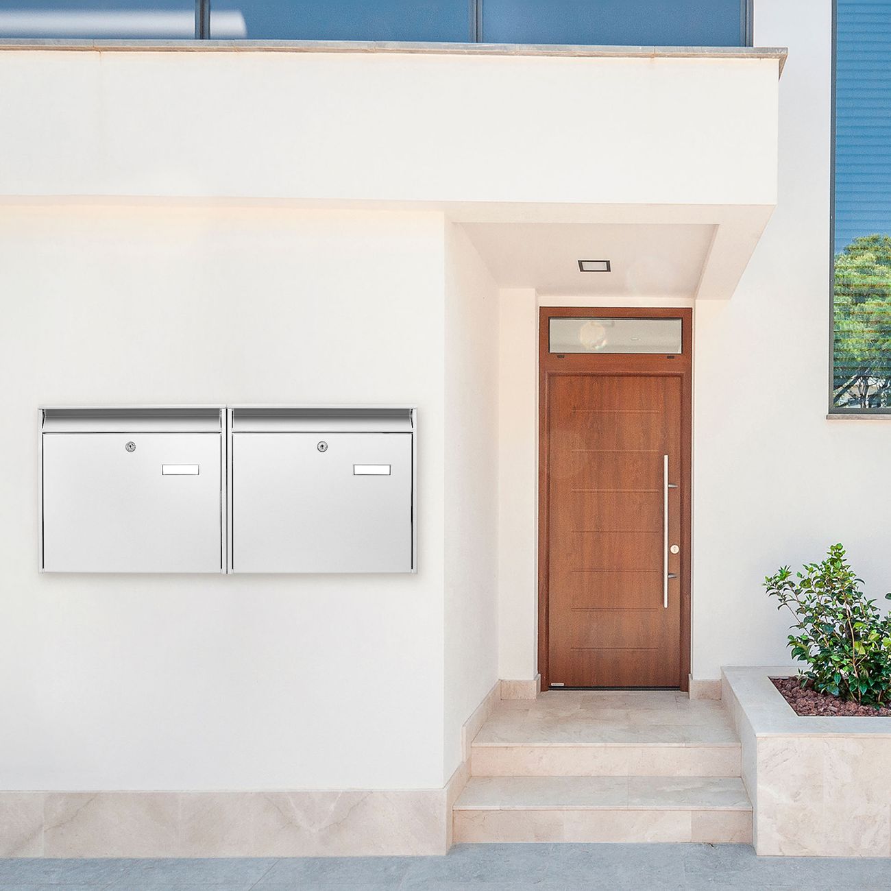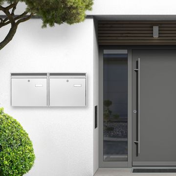 Die Briefkastenanlage besteht aus 2 einzelnen Briefkästen und ist komplett 36,2 x 32,2 x 10cm groß, besteht aus weiß pulverbeschichtetem Stahl und wiegt zusammen ca. 6kg. Da die Briefkästen einzeln angebracht werden, können Sie frei wählen, wie diese hängen sollen. Sie erhalten zu jedem einzelnen Kasten zwei Schlüssel sowie passendes Montagematerial.