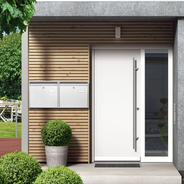 Die Burg-Wächter Briefkastenanlage bietet ein ausreichendes Fassungsvermögen auch für größere Sendungsmengen. Das integrierte Namensschild lässt sich individuell beschriften und bei Bedarf wechseln. Der Briefschlitz ist groß genug, um auch A4 oder C4 Sendungen zu fassen. Die schlicht gehaltene Form ist zeitlos, ohne dass auf Funktionalität verzichtet wird.