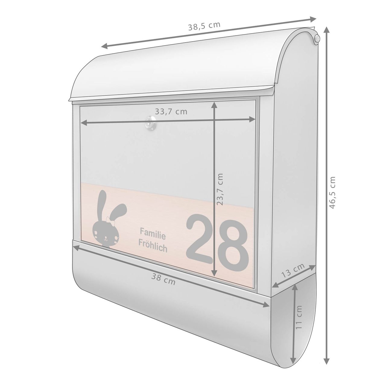 - Briefschlitz: 33x3,5cm BxH