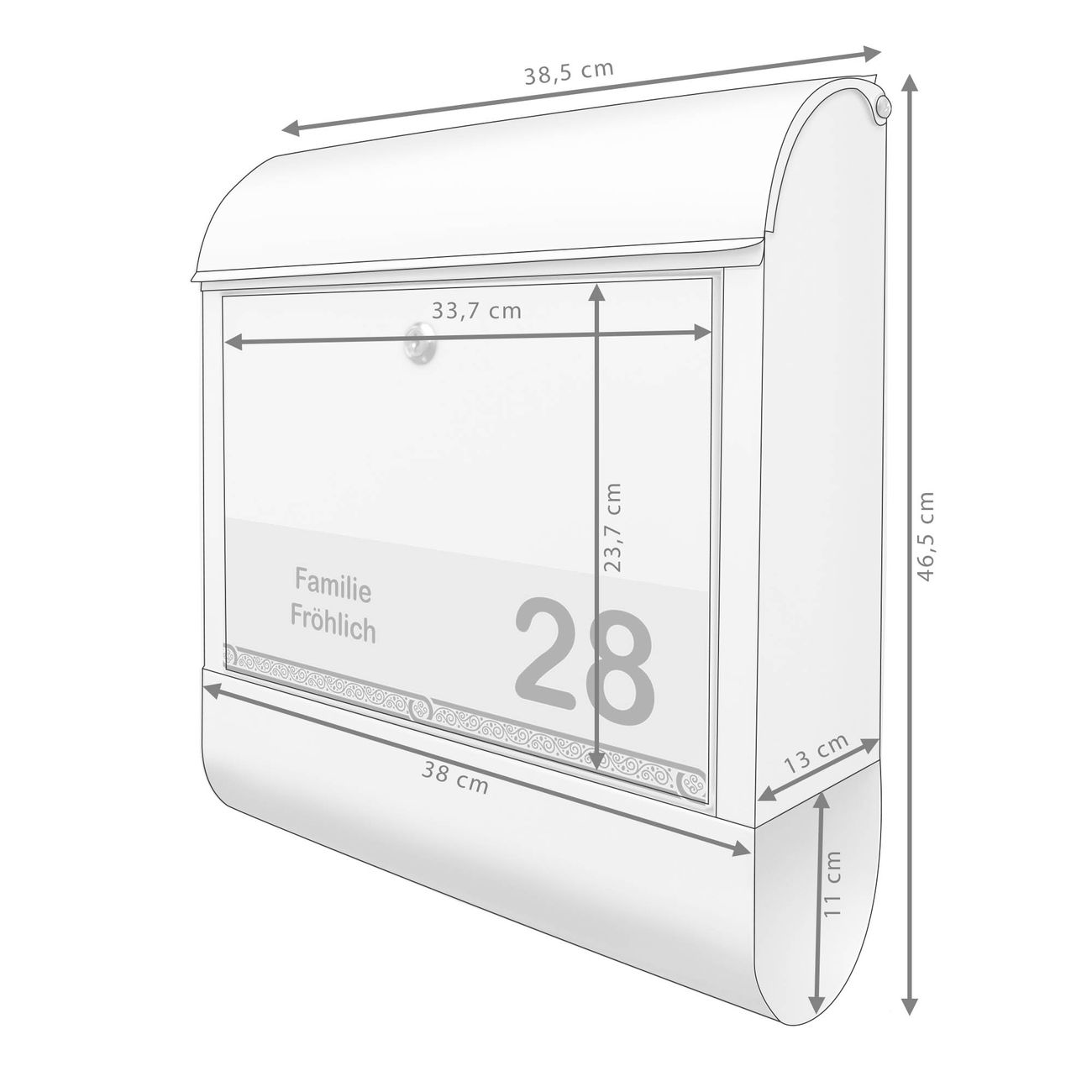 - Briefschlitz: 33x3,5cm BxH