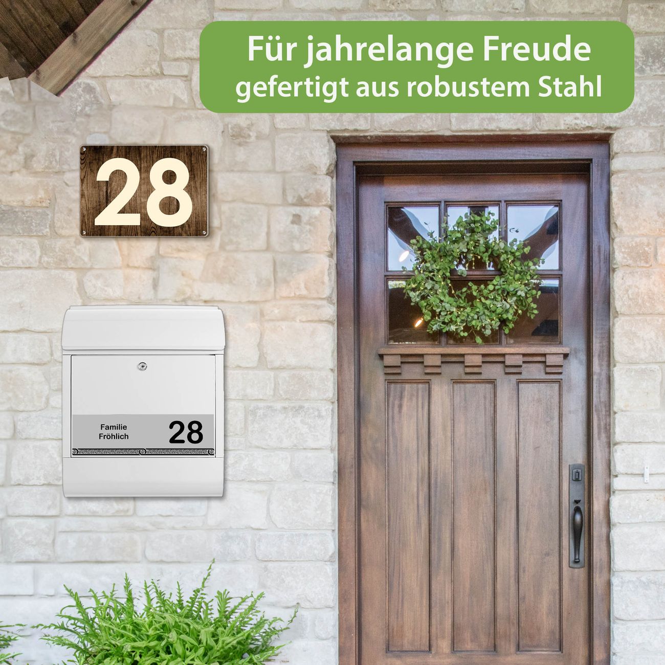 Der Vorschau-Text Familie Fröhlich wird durch Ihren persönlichen Wunschtext ersetzt. Die Schriftart und Farbe bleiben gleich wie in der Vorschau.