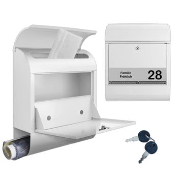 DESIGN: Der Postkasten mit Motiv Motiv Ornament SG kompakt hat ein sehr ansprechendes und ausgefallenes Design, damit entlocken Sie Ihren Nachbarn und dem Postboten ein Lächeln. Heben Sie Sich von der tristen grauen Masse ab, ohne auf Funktionalität zu verzichten. DETAILS: Der Postkasten besteht aus pulverbeschichtetem Stahl. Er ist 38x46x12,5cm groß. Das Motiv besteht aus einer wetter- und UV-resistenten Folie, die mit einem Schutzlaminat überzogen ist, sodass der Briefkasten zusätzlich vor Kratzern geschützt ist. Der Briefkasten wird mit Montagematerial, zusätzlich zwei Schlüssel sowie einer Bohrschablone geliefert. NUTZEN: Sie können diesen Briefkasten sowohl als Wandbriefkasten montieren oder einen passenden Ständer kaufen und als Standbriefkasten einbetonieren. Die Größe bietet genügend Platz für Sendungen aller Art, der Einwurf fasst auch größere A4 Sendungen. BANJADO: Ihr Briefkasten wird in Sachsen in einer kleinen Manufaktur von Hand veredelt. Die Motivfolie ist lösungsmittelfrei und schutzlaminiert für einen langen Halt. Wir legen großen Wert auf die Verbindung von Funktionalität und Design. Sie erhalten Handarbeit aus Sachsen.