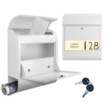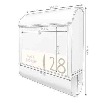 DESIGN: Der Postkasten mit Motiv Motiv Pinselstrich Beige kompakt hat ein sehr ansprechendes und ausgefallenes Design, damit entlocken Sie Ihren Nachbarn und dem Postboten ein Lächeln. Heben Sie Sich von der tristen grauen Masse ab, ohne auf Funktionalität zu verzichten. DETAILS: Der Postkasten besteht aus pulverbeschichtetem Stahl. Er ist 38x46x12,5cm groß. Das Motiv besteht aus einer wetter- und UV-resistenten Folie, die mit einem Schutzlaminat überzogen ist, sodass der Briefkasten zusätzlich vor Kratzern geschützt ist. Der Briefkasten wird mit Montagematerial, zusätzlich zwei Schlüssel sowie einer Bohrschablone geliefert. NUTZEN: Sie können diesen Briefkasten sowohl als Wandbriefkasten montieren oder einen passenden Ständer kaufen und als Standbriefkasten einbetonieren. Die Größe bietet genügend Platz für Sendungen aller Art, der Einwurf fasst auch größere A4 Sendungen. BANJADO: Ihr Briefkasten wird in Sachsen in einer kleinen Manufaktur von Hand veredelt. Die Motivfolie ist lösungsmittelfrei und schutzlaminiert für einen langen Halt. Wir legen großen Wert auf die Verbindung von Funktionalität und Design. Sie erhalten Handarbeit aus Sachsen.