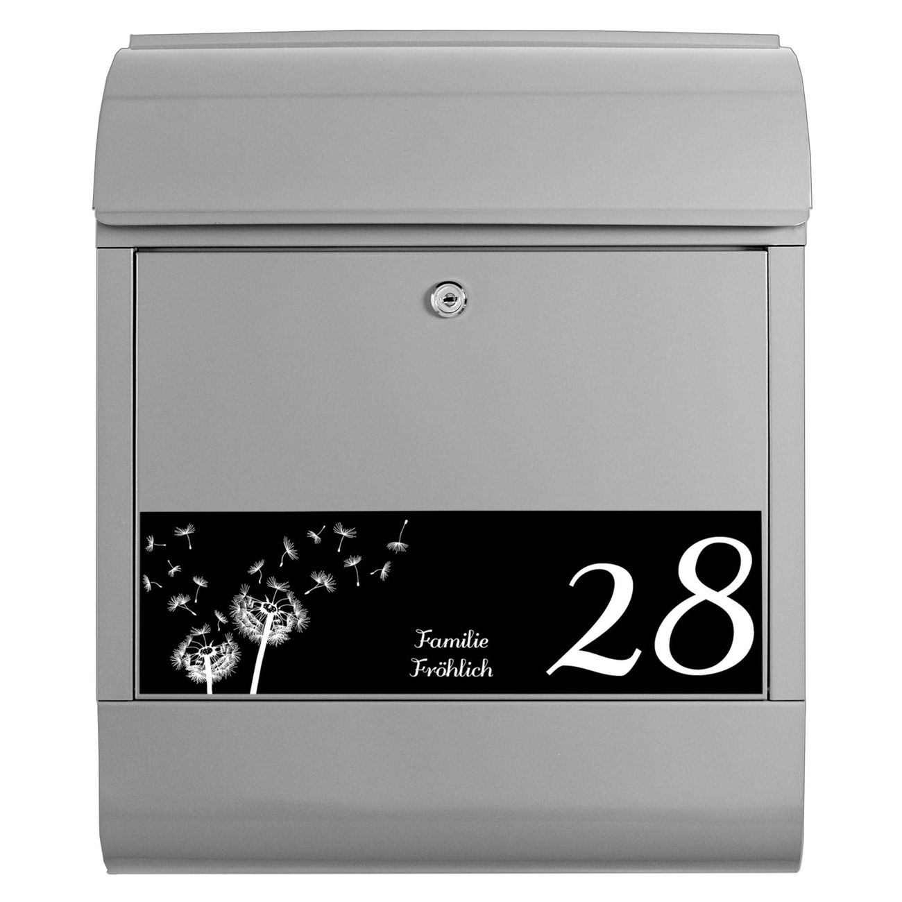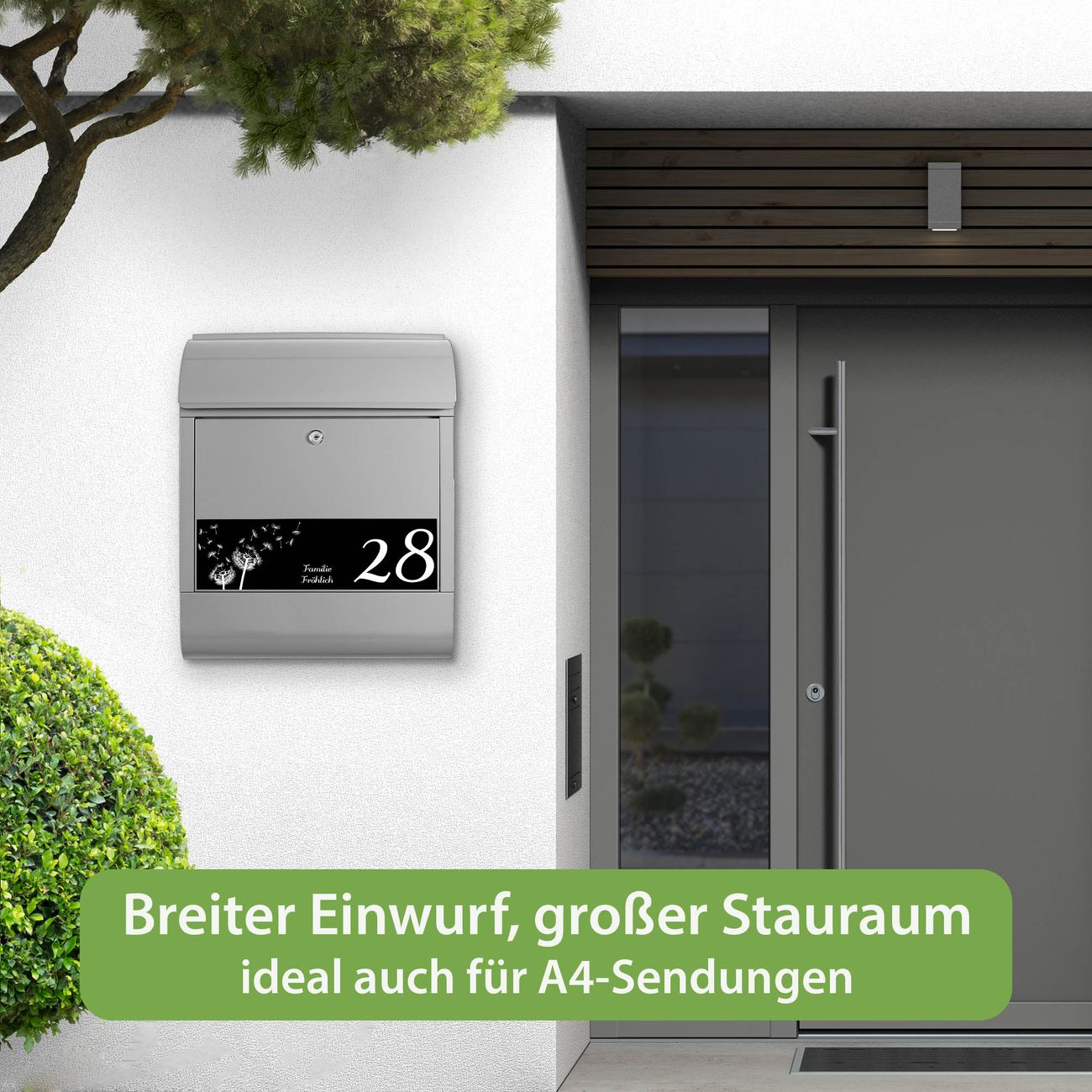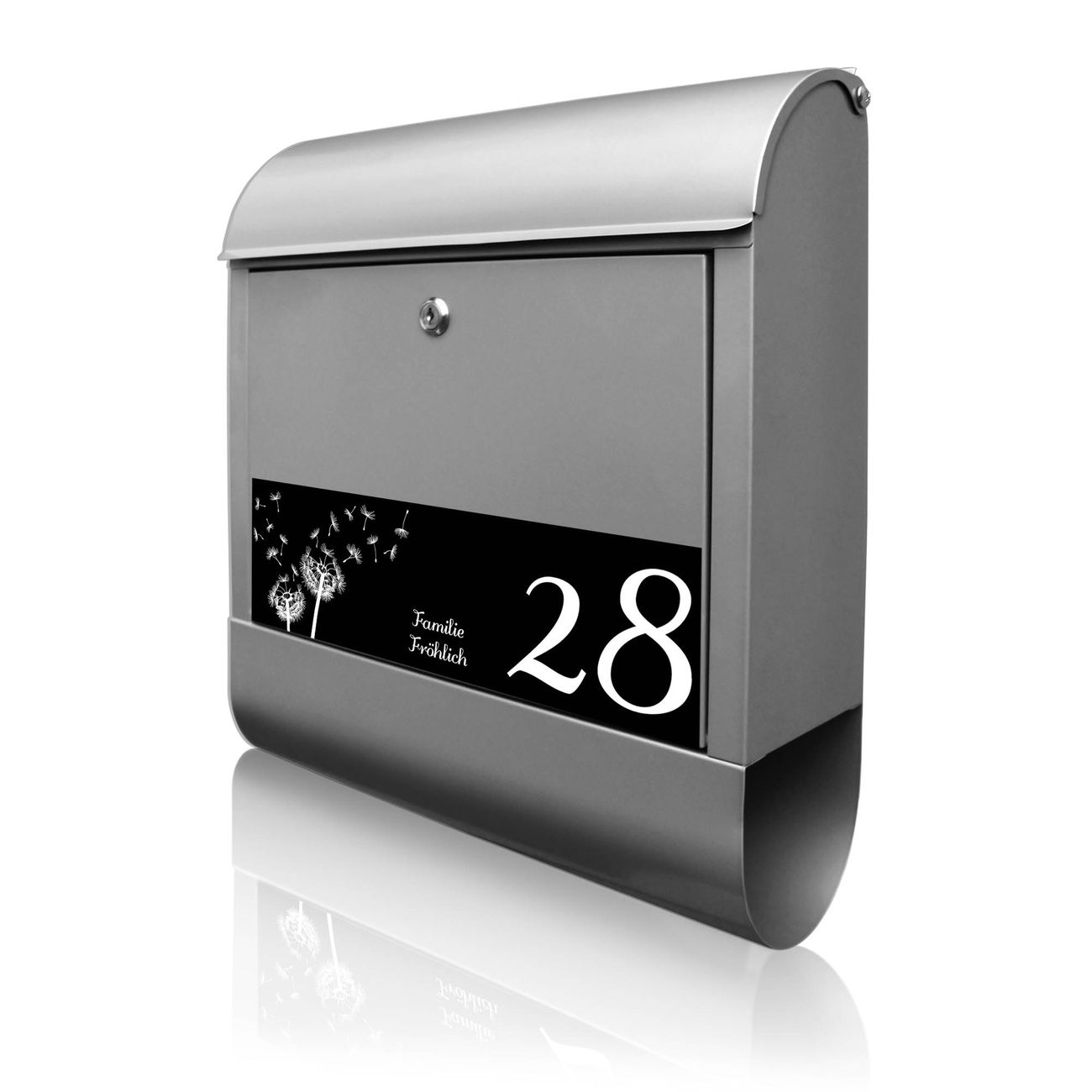 Großer Stahl Briefkasten Motiv Pusteblume SW kompakt