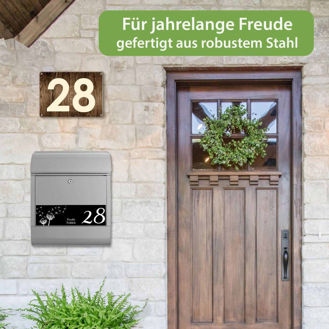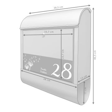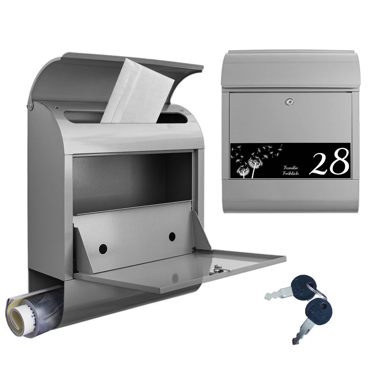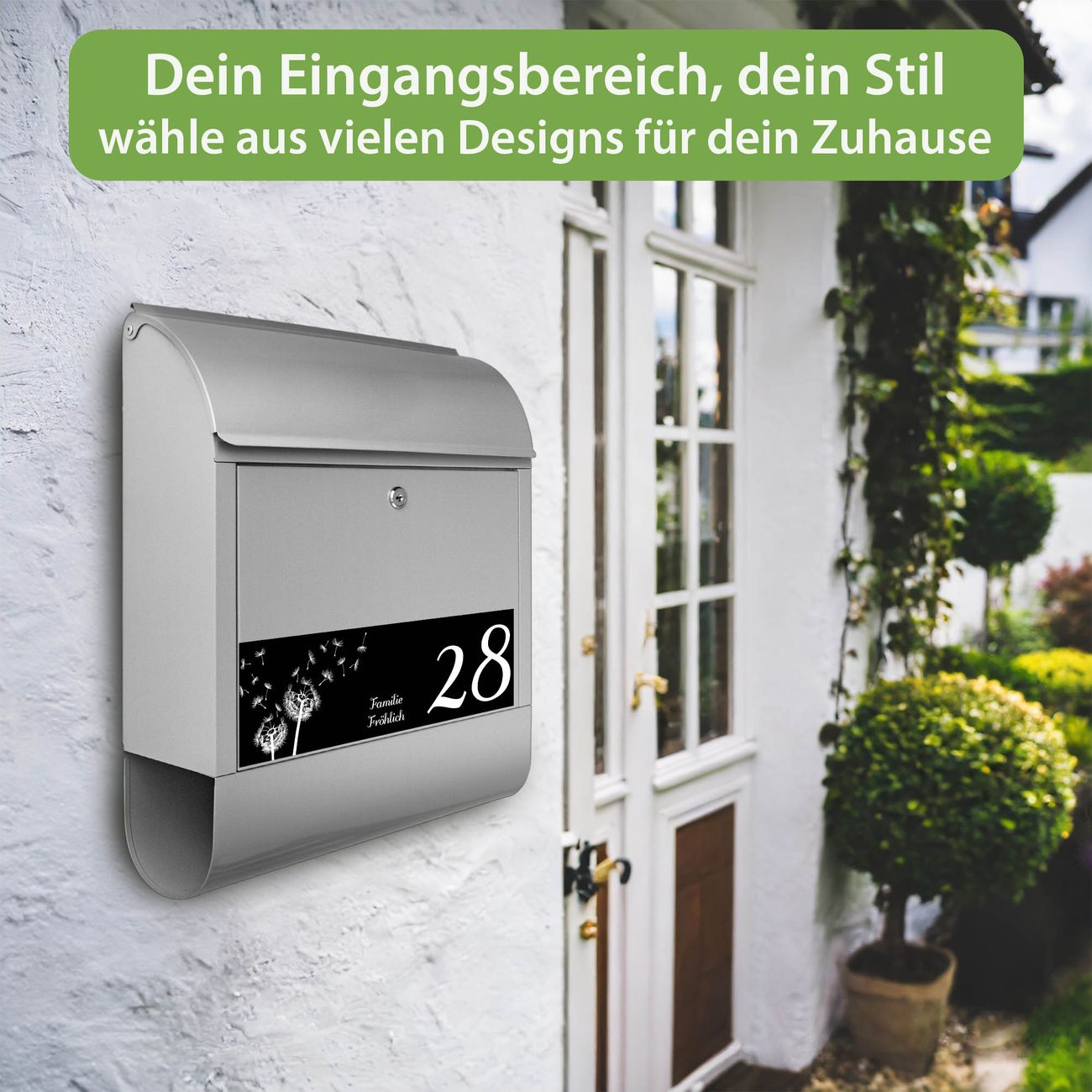 Großer Stahl Briefkasten Motiv Pusteblume SW kompakt