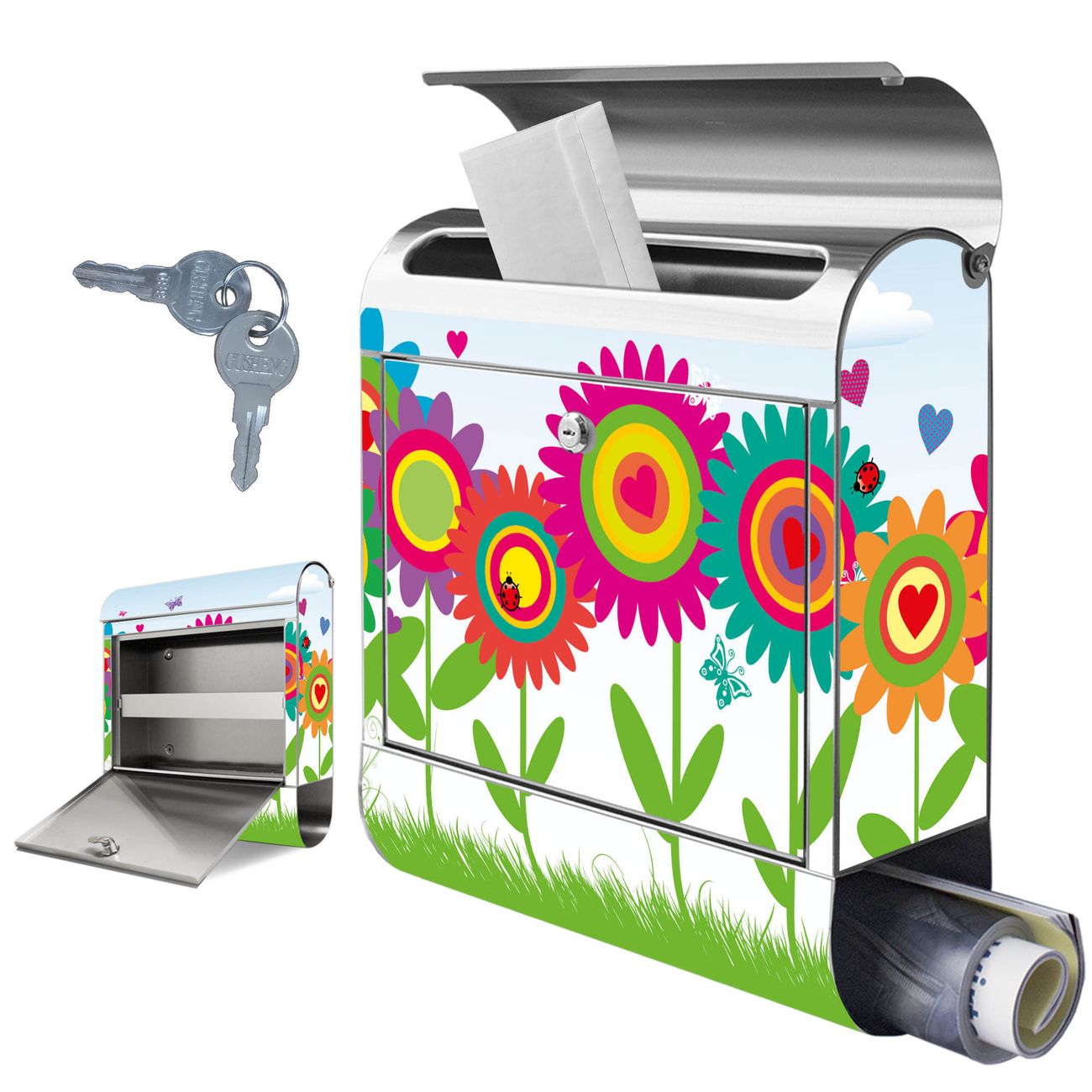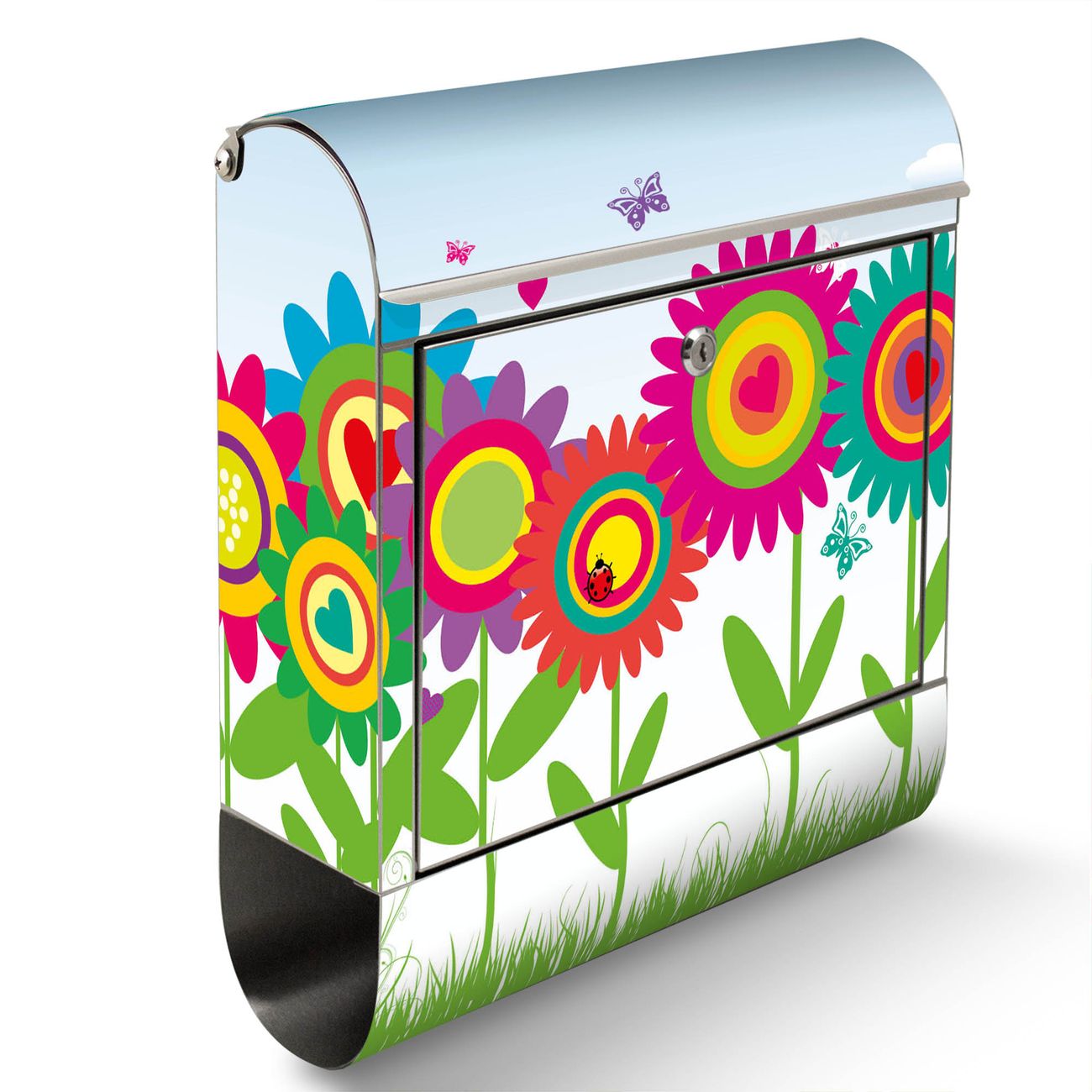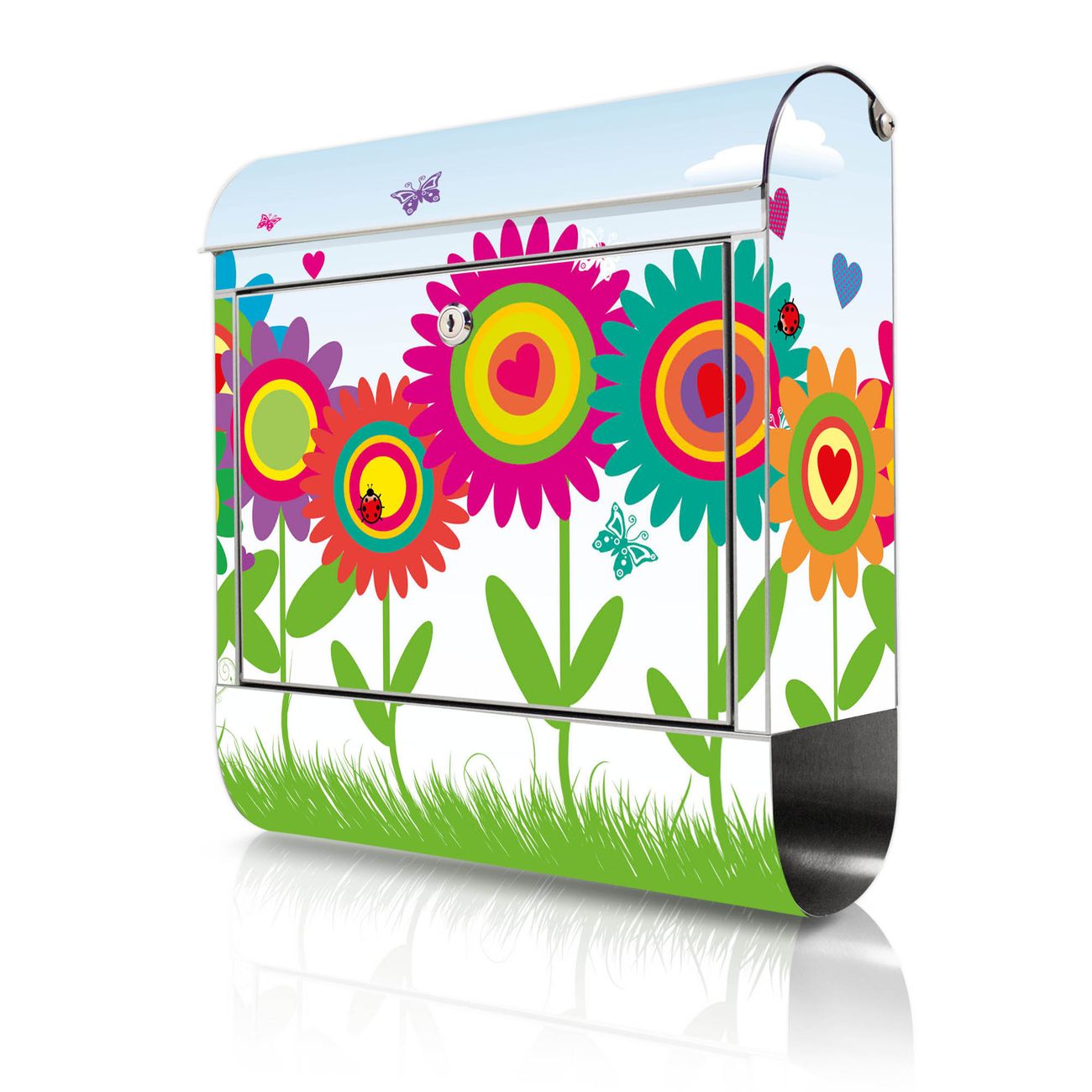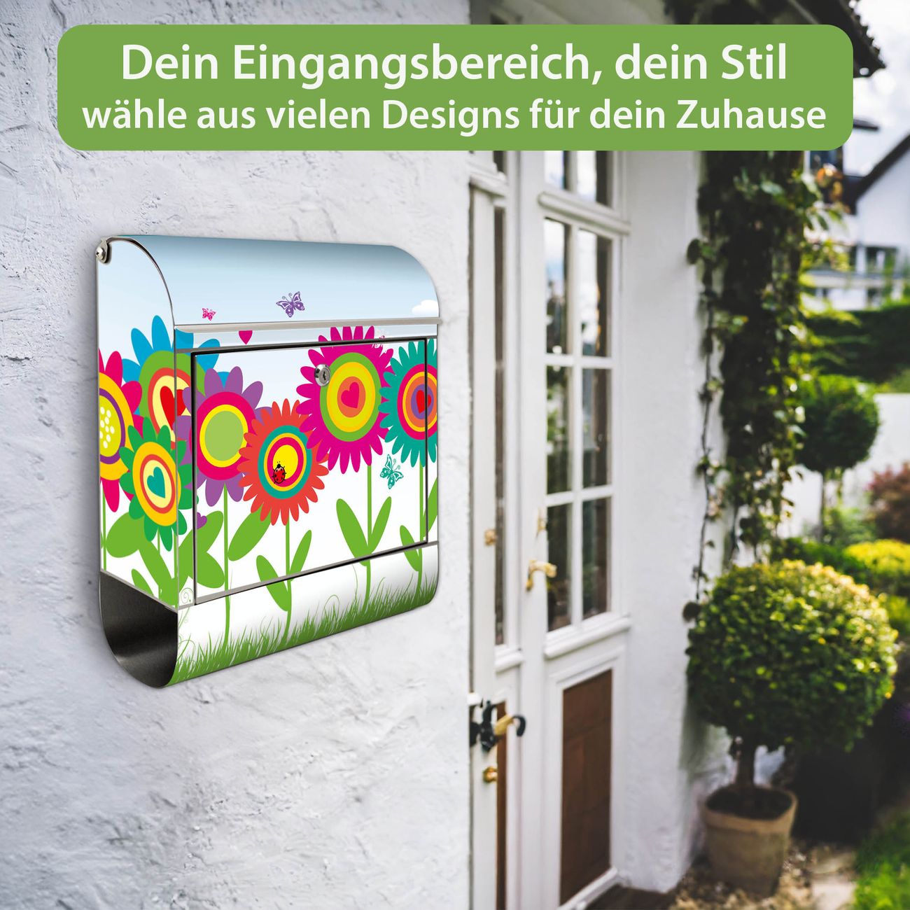 Wandbriefkasten Edelstahl Motiv Bunte Blumen