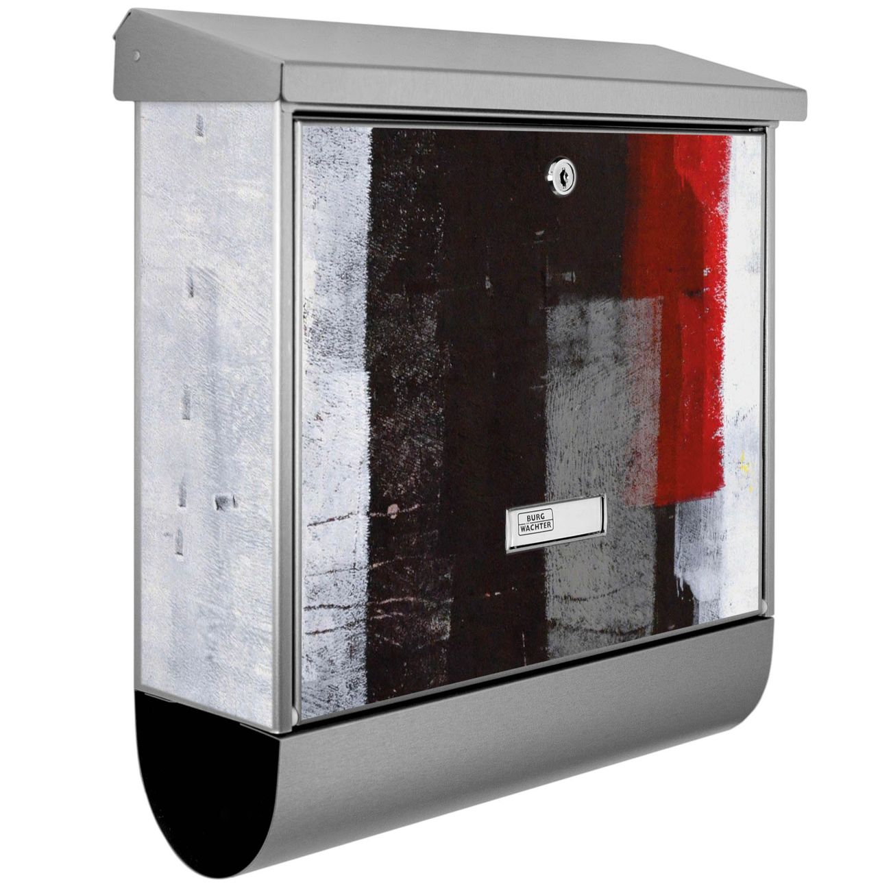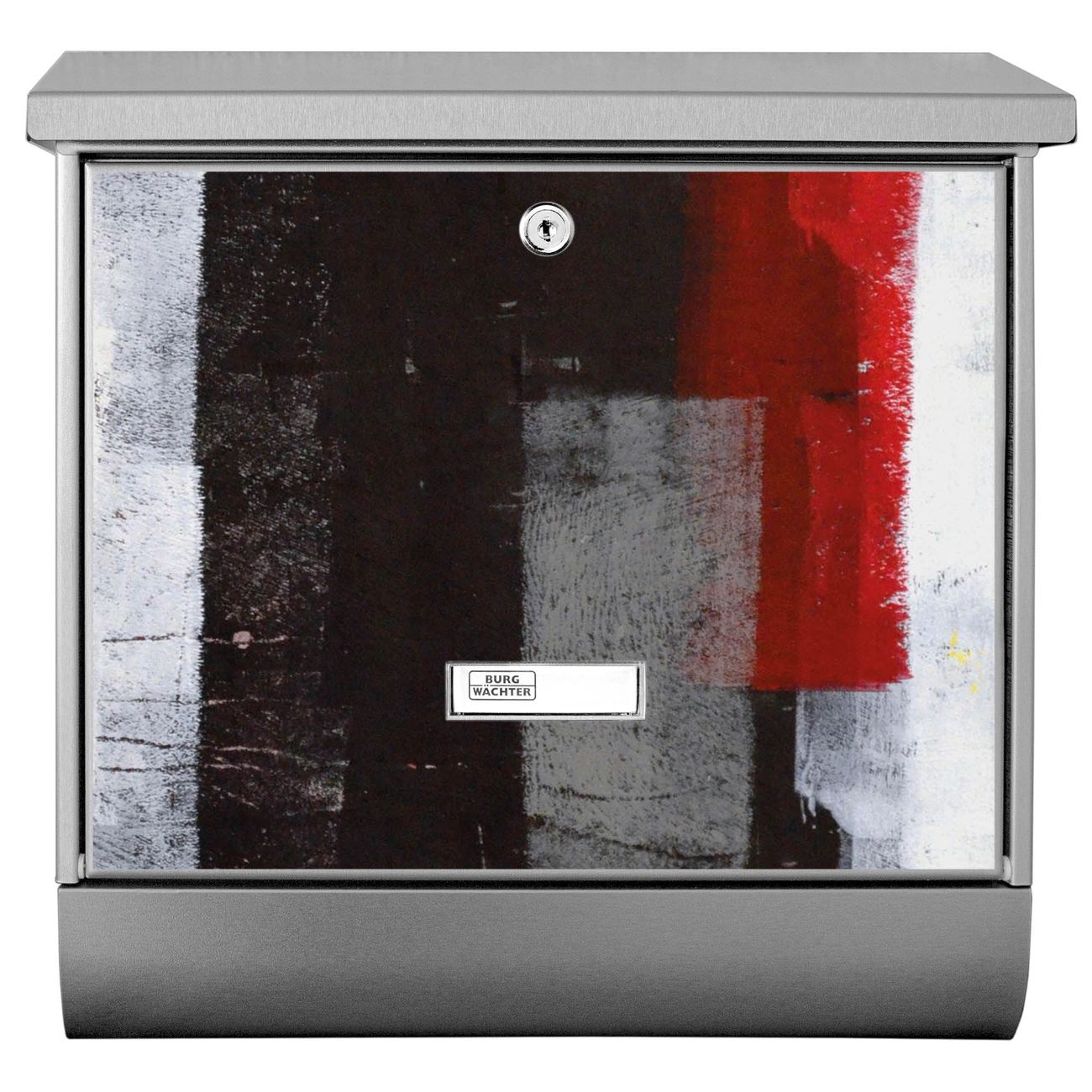 Der BURG-WÄCHTER Edelstahl Briefkasten mit Motiv Abstrakt Rot und Zeitungsrolle bietet Ihnen mit seinem Fassungsvermögen genügend Platz auch für große A4 Sendungen und Zeitschriften. Das integrierte Regendach schützt Ihre Post vor dem Eindringen von Regen.