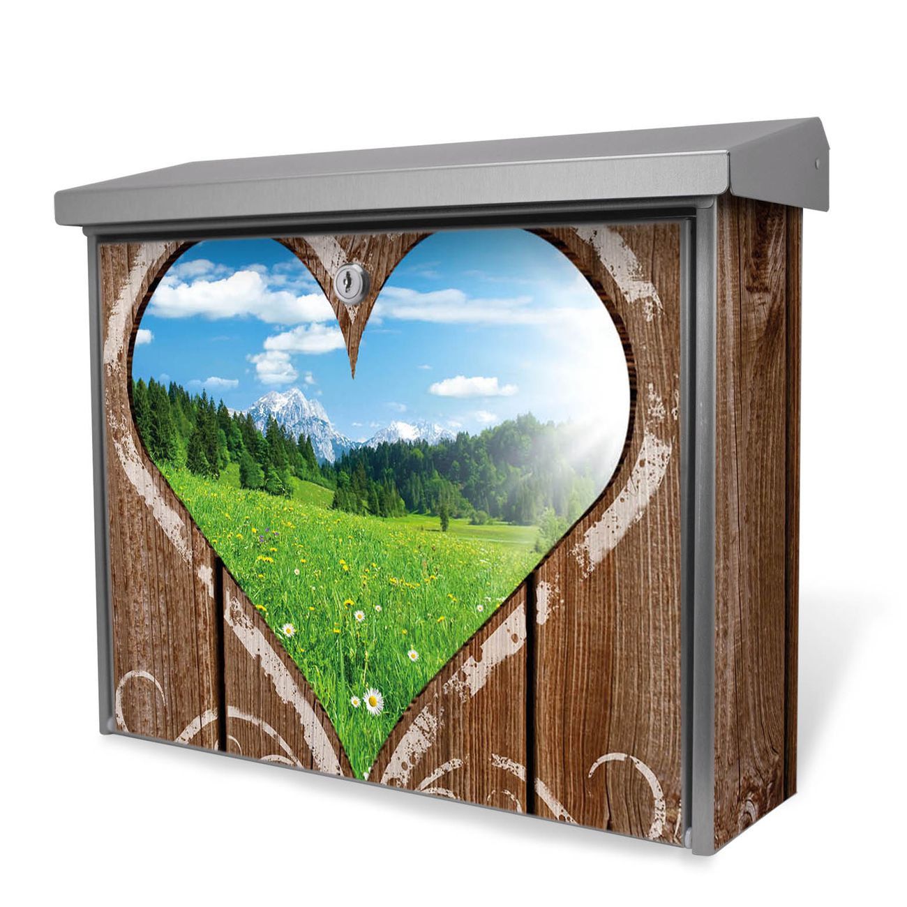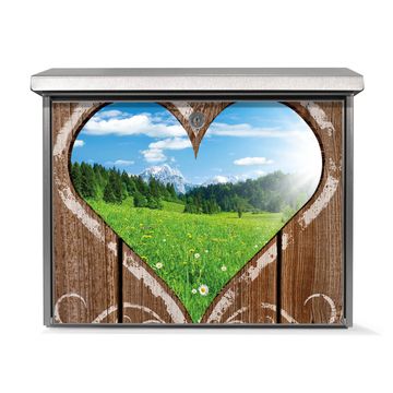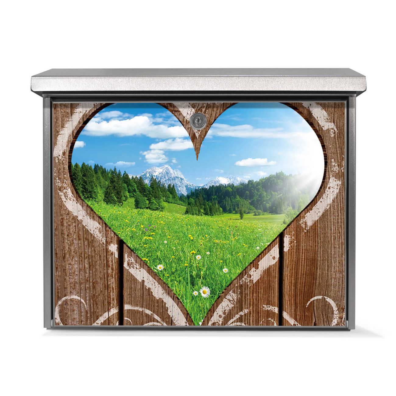Der Postkasten mit Ausblick mit Herz Motiv hat ein sehr ansprechendes und zeitloses Design. Unsere Motivpalette hält jede Menge Varianten bereit, ob klassisch, modern, verspielt oder witzig - für jeden haben wir das passende Motiv parat. Der Briefkasten ist das Aushängeschild Ihres Hauses.