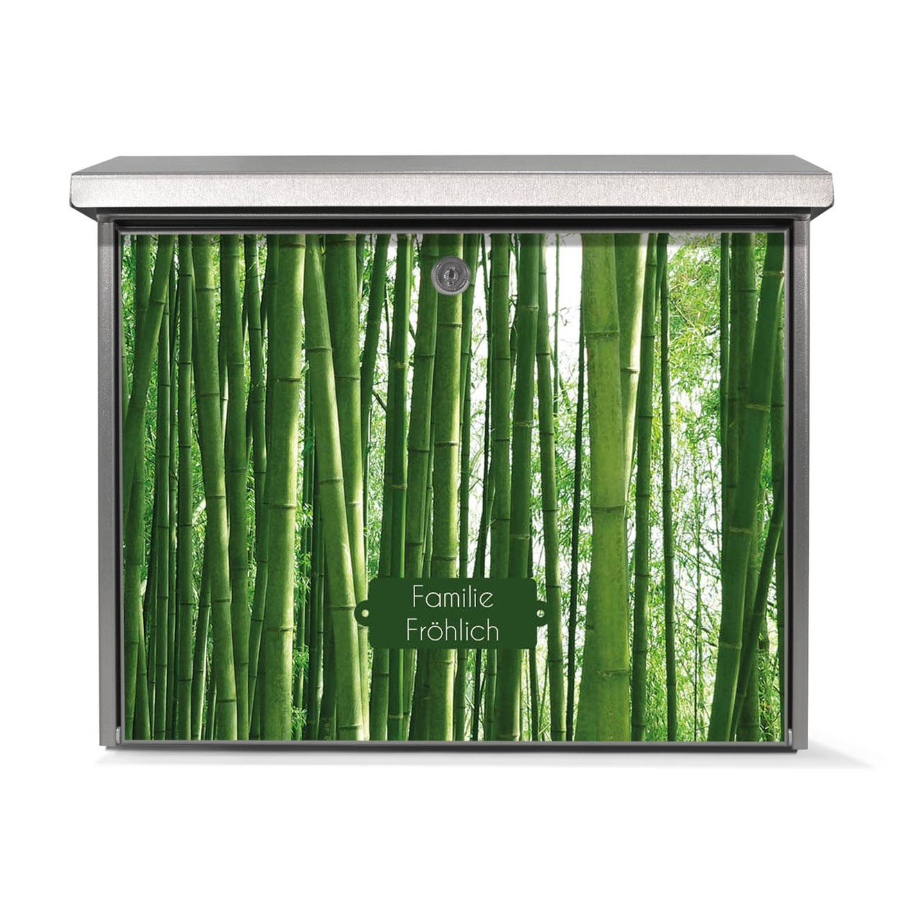 Der Postkasten mit Bambus Motiv hat ein sehr ansprechendes und zeitloses Design. Unsere Motivpalette hält jede Menge Varianten bereit, ob klassisch, modern, verspielt oder witzig - für jeden haben wir das passende Motiv parat. Der Briefkasten ist das Aushängeschild Ihres Hauses.