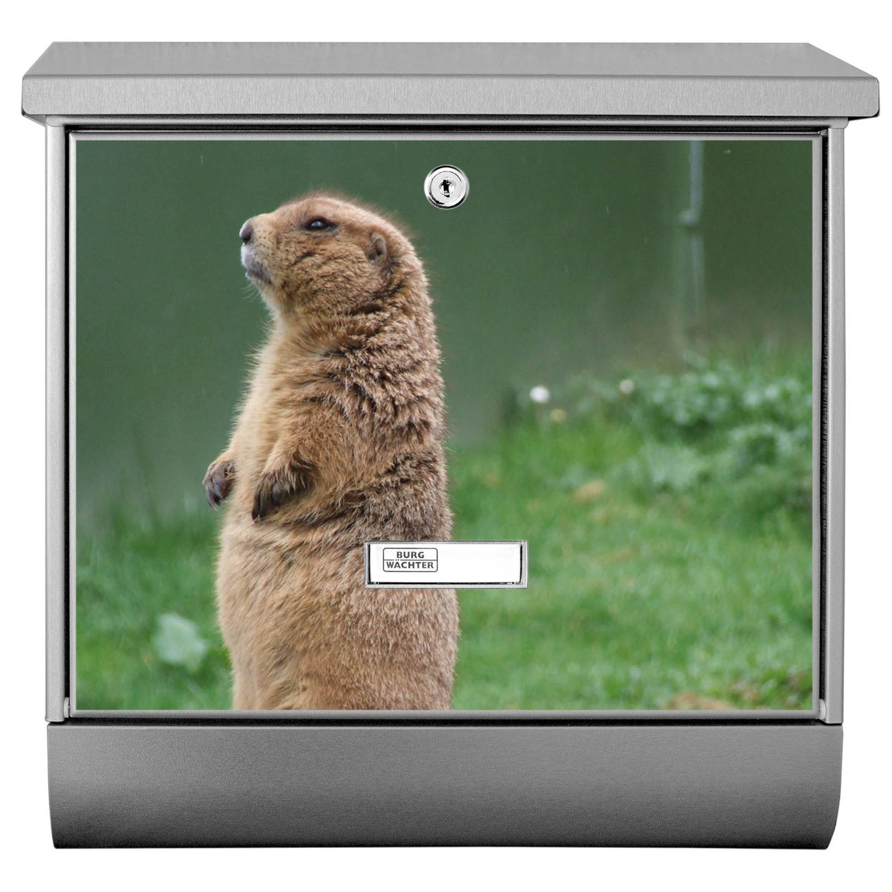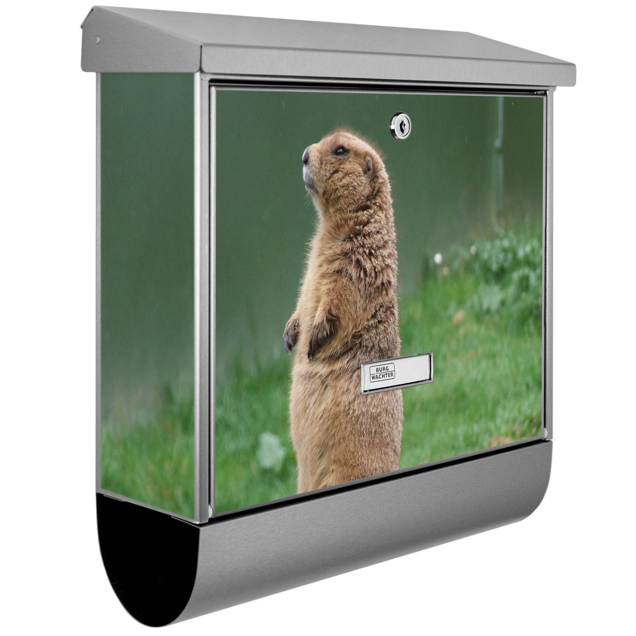 Der BURG-WÄCHTER Edelstahl Briefkasten mit Motiv Biber und Zeitungsrolle bietet Ihnen mit seinem Fassungsvermögen genügend Platz auch für große A4 Sendungen und Zeitschriften. Das integrierte Regendach schützt Ihre Post vor dem Eindringen von Regen.