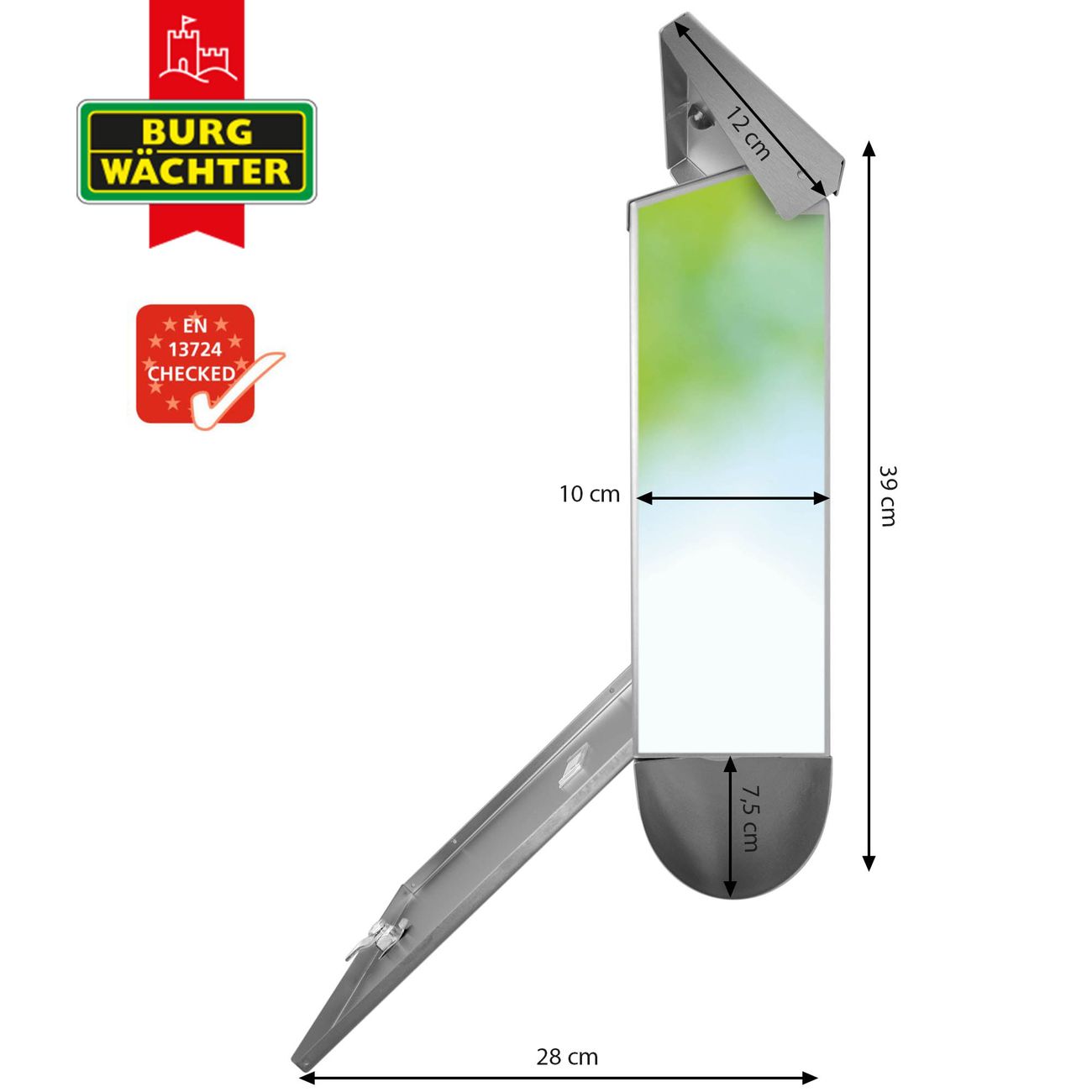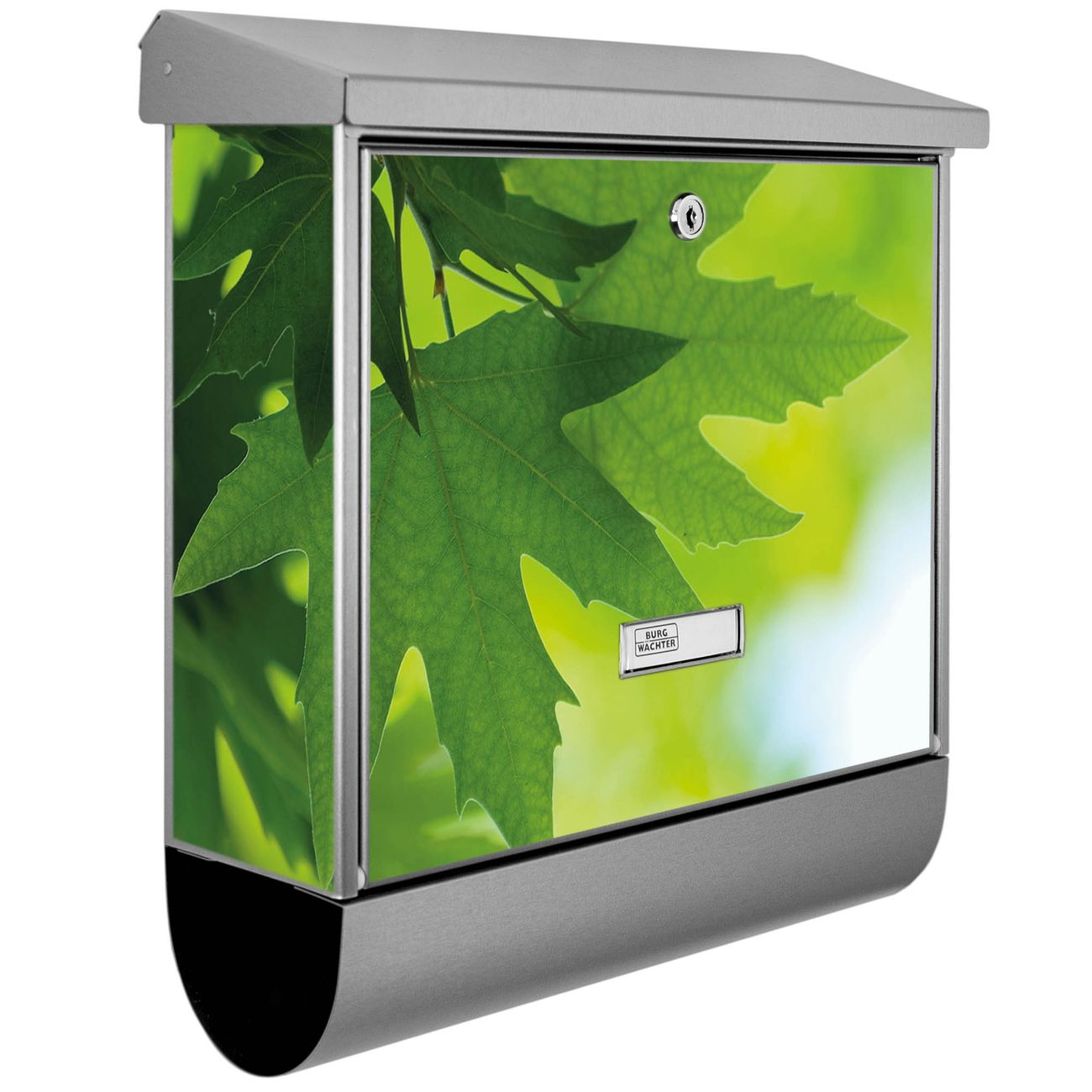 Der BURG-WÄCHTER Edelstahl Briefkasten mit Motiv Blättertraum und Zeitungsrolle bietet Ihnen mit seinem Fassungsvermögen genügend Platz auch für große A4 Sendungen und Zeitschriften. Das integrierte Regendach schützt Ihre Post vor dem Eindringen von Regen.