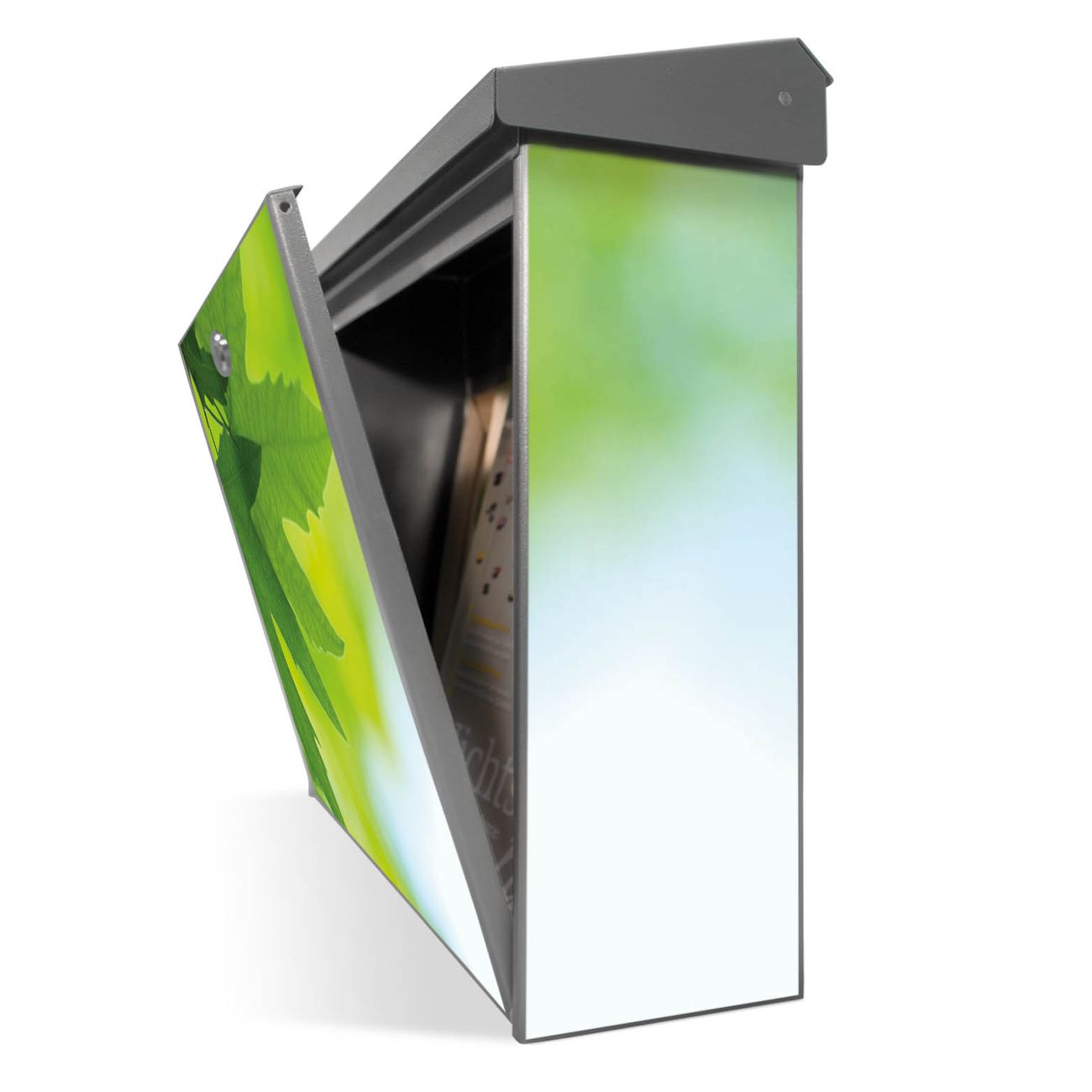 Der Postkasten mit Blättertraum Motiv hat ein sehr ansprechendes und zeitloses Design. Unsere Motivpalette hält jede Menge Varianten bereit, ob klassisch, modern, verspielt oder witzig - für jeden haben wir das passende Motiv parat. Der Briefkasten ist das Aushängeschild Ihres Hauses.