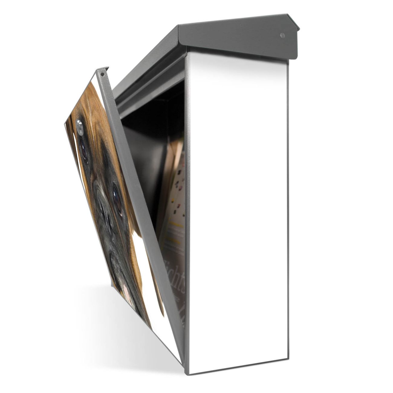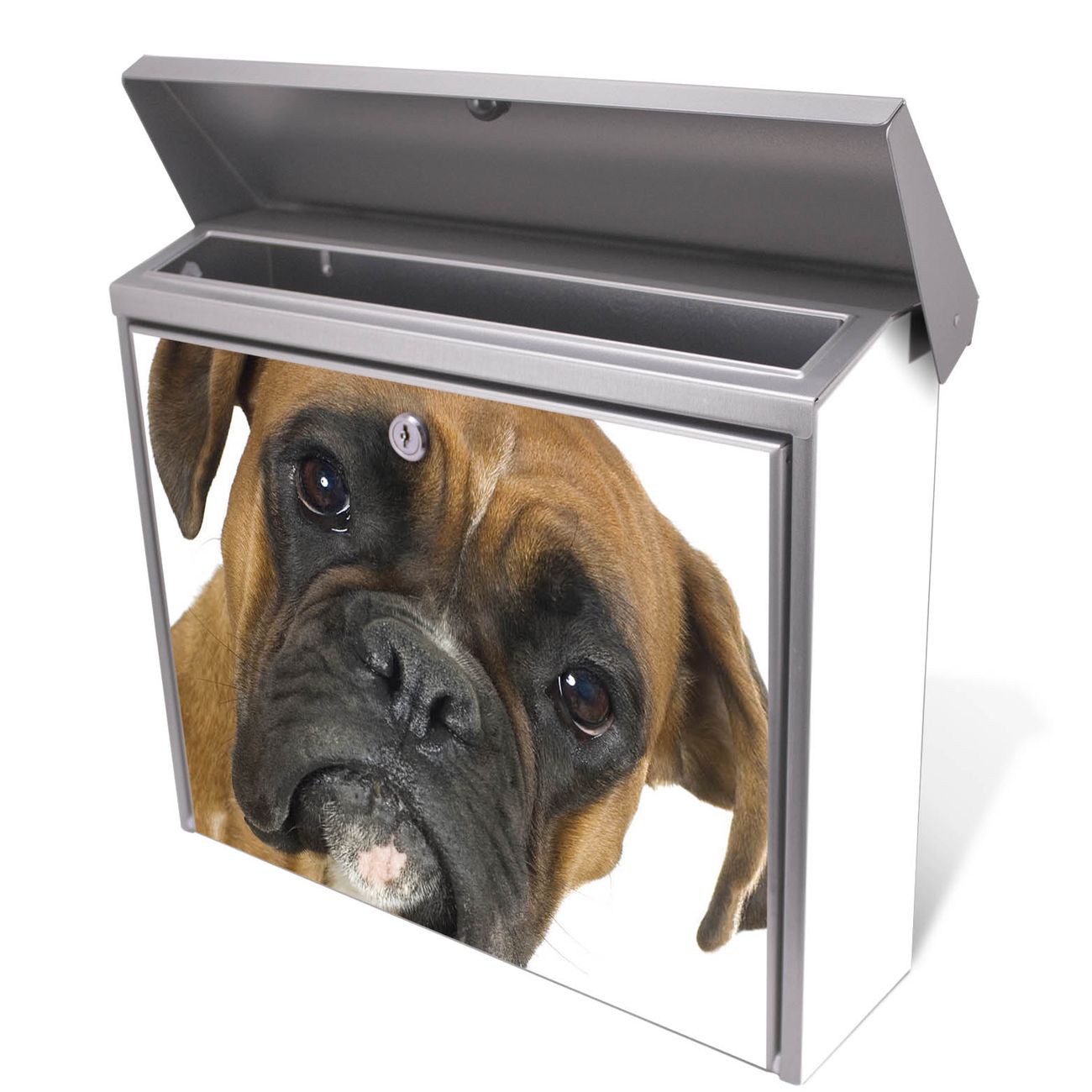 Der Postkasten mit Boxer Motiv hat ein sehr ansprechendes und zeitloses Design. Unsere Motivpalette hält jede Menge Varianten bereit, ob klassisch, modern, verspielt oder witzig - für jeden haben wir das passende Motiv parat. Der Briefkasten ist das Aushängeschild Ihres Hauses.