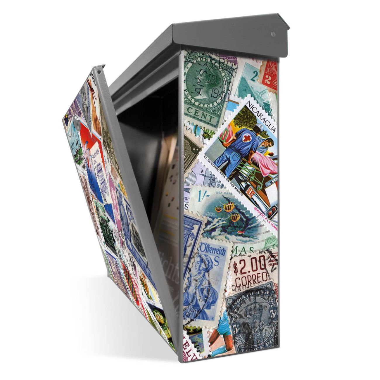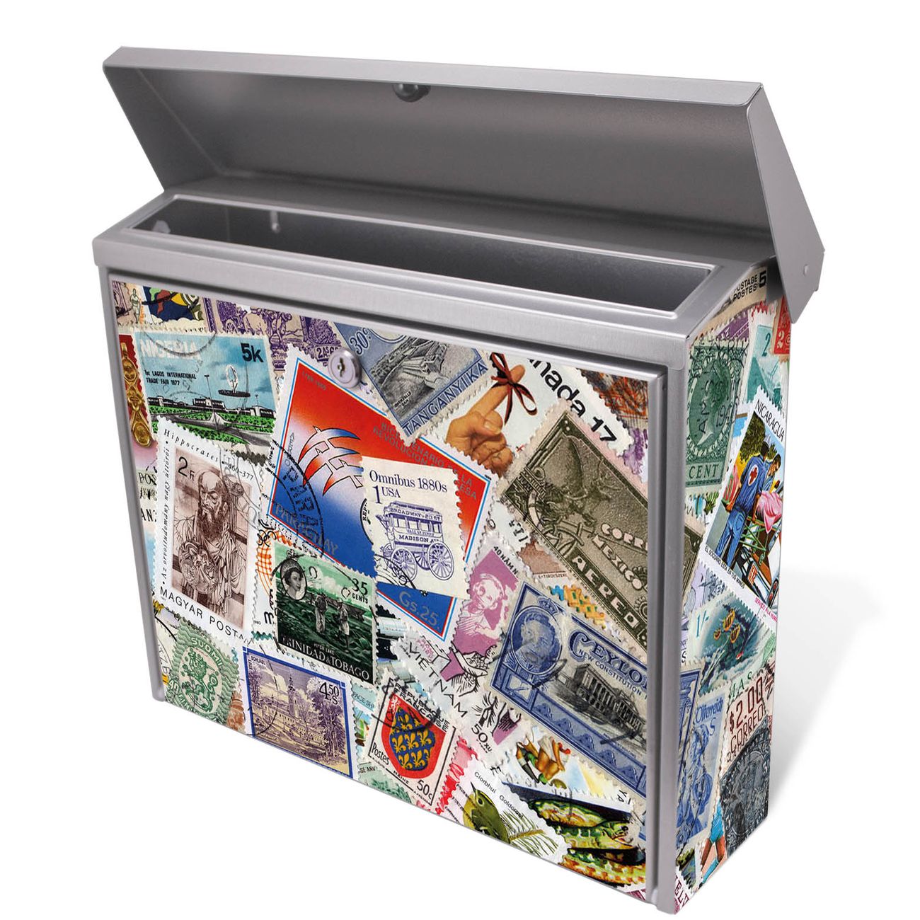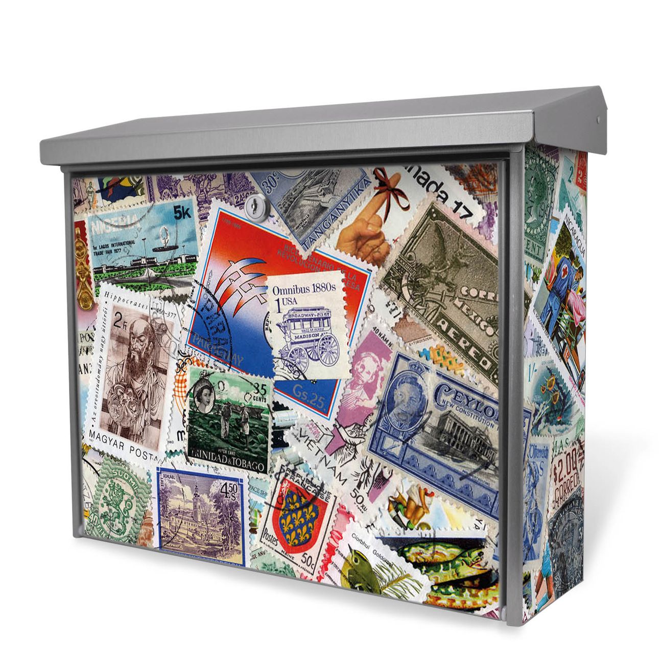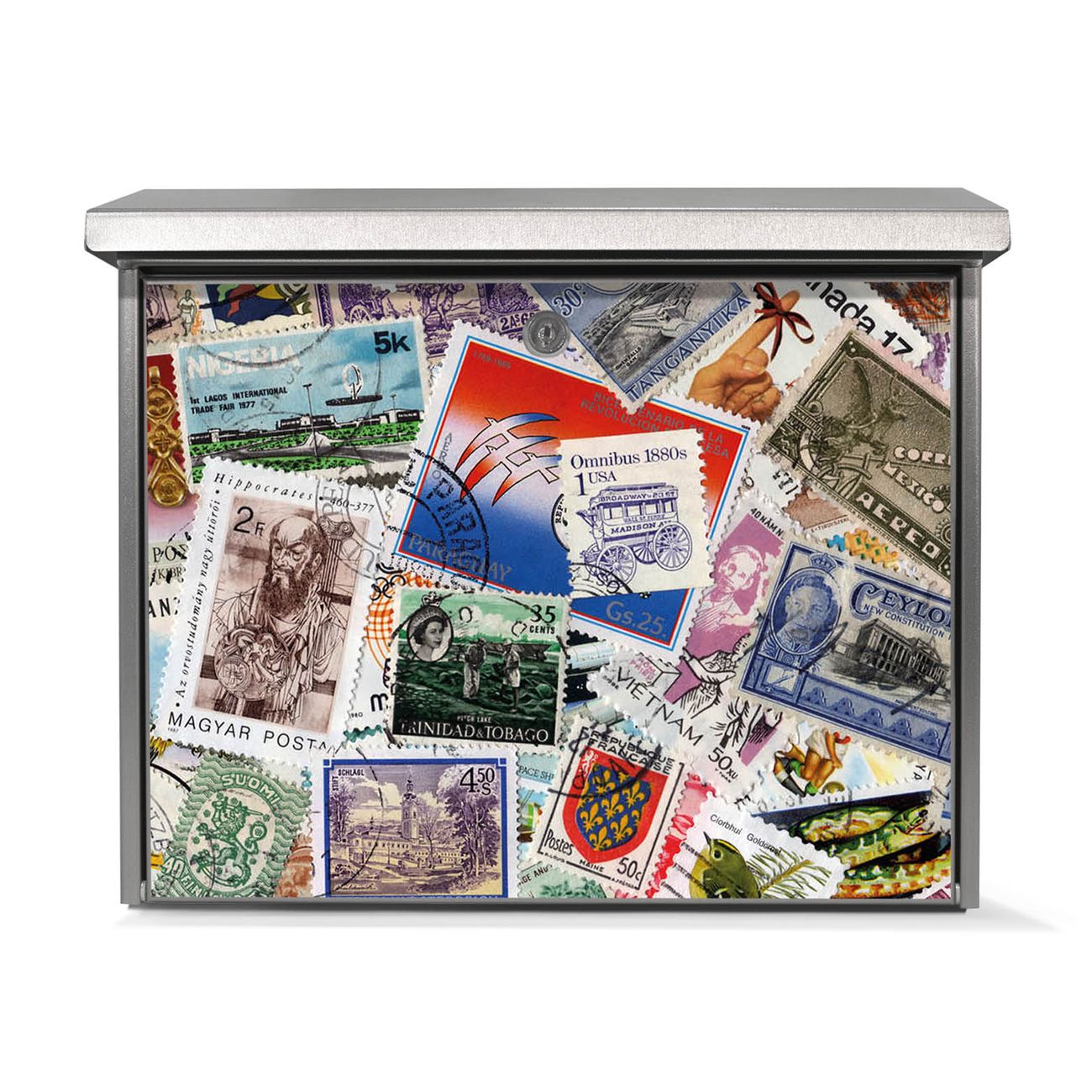 Der Postkasten mit Briefmarken Motiv hat ein sehr ansprechendes und zeitloses Design. Unsere Motivpalette hält jede Menge Varianten bereit, ob klassisch, modern, verspielt oder witzig - für jeden haben wir das passende Motiv parat. Der Briefkasten ist das Aushängeschild Ihres Hauses.