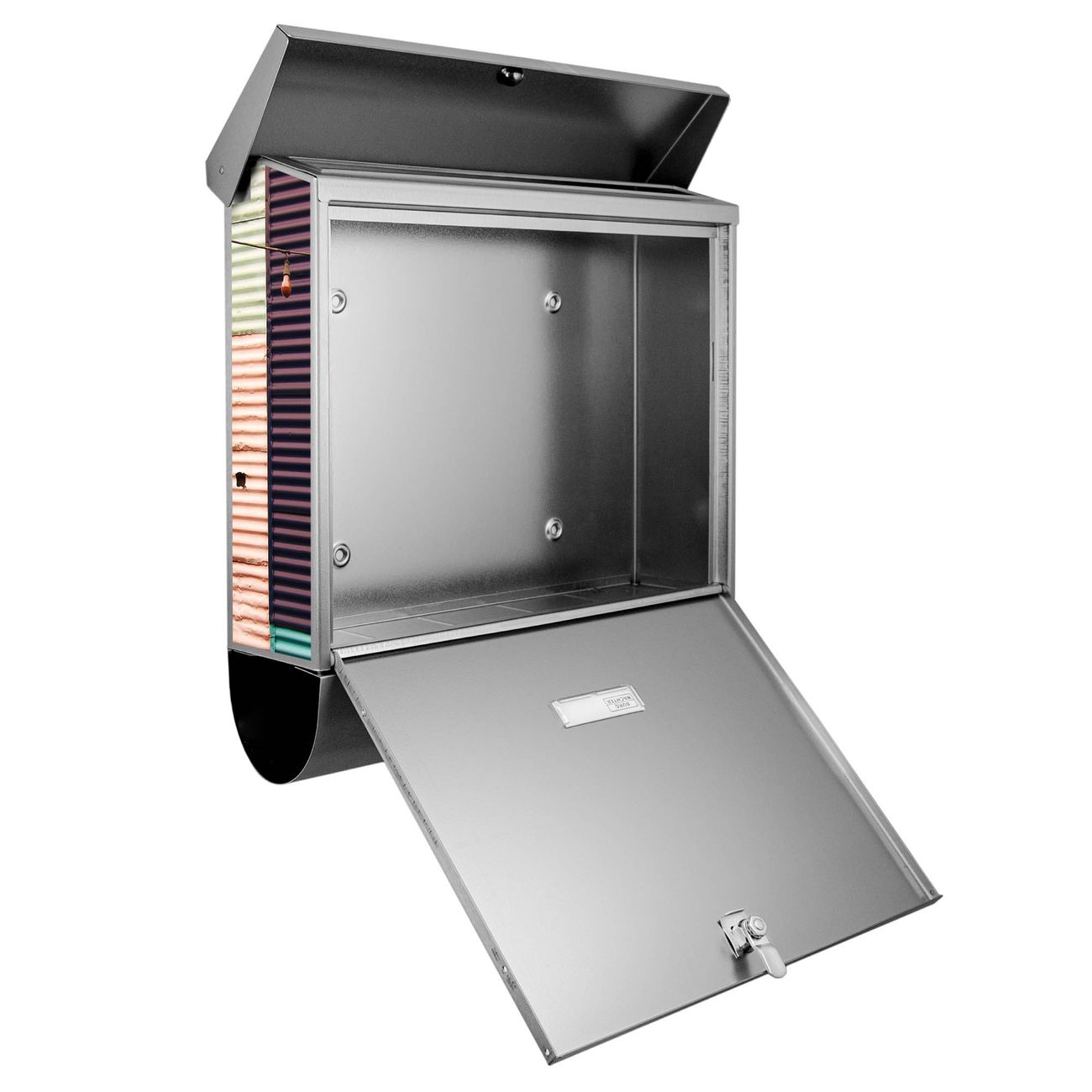Der Briefkasten besteht aus Edelstahl, einem hochwertigen Material das rostfrei und äußerst unempfindlich gegenüber Witterungseinflüssen ist. Das Motiv besteht aus einer wetter- und UV-festen Folie, die Ihren Briefkasten zusätzlich vor Kratzern schützt. Der Postkasten ist je nach Auswahl 38 x 39 x 12 CM oder 38 x 31,5 x 12 cm (BxHxT) groß. Der Briefeinwurf ist 33,2cm x 3,1cm, Format DIN C4. Der Briefkasten wird mit Montagematerial und zwei Schlüsseln geliefert.