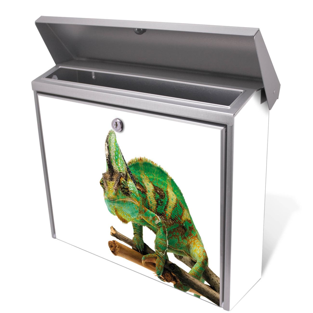 Der Postkasten mit Chamäleon Motiv hat ein sehr ansprechendes und zeitloses Design. Unsere Motivpalette hält jede Menge Varianten bereit, ob klassisch, modern, verspielt oder witzig - für jeden haben wir das passende Motiv parat. Der Briefkasten ist das Aushängeschild Ihres Hauses.