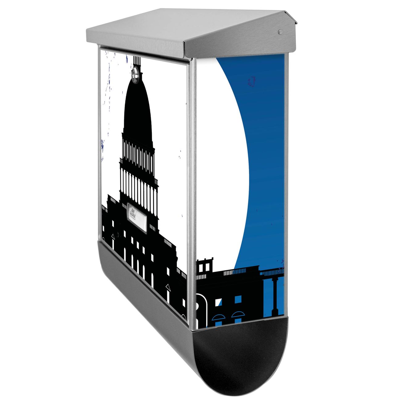 Der City Poster Washington Motivbriefkasten hat ein sehr ansprechendes und zeitloses Design. Unsere Motivpalette hält jede Menge Varianten bereit, ob klassisch, modern, verspielt oder witzig - für jeden haben wir das passende Motiv parat. Der Briefkasten mit Zeitungsfach ist Ihr Aushängeschild, heben Sie Sich ab ohne auf Funktionalität zu verzichten.