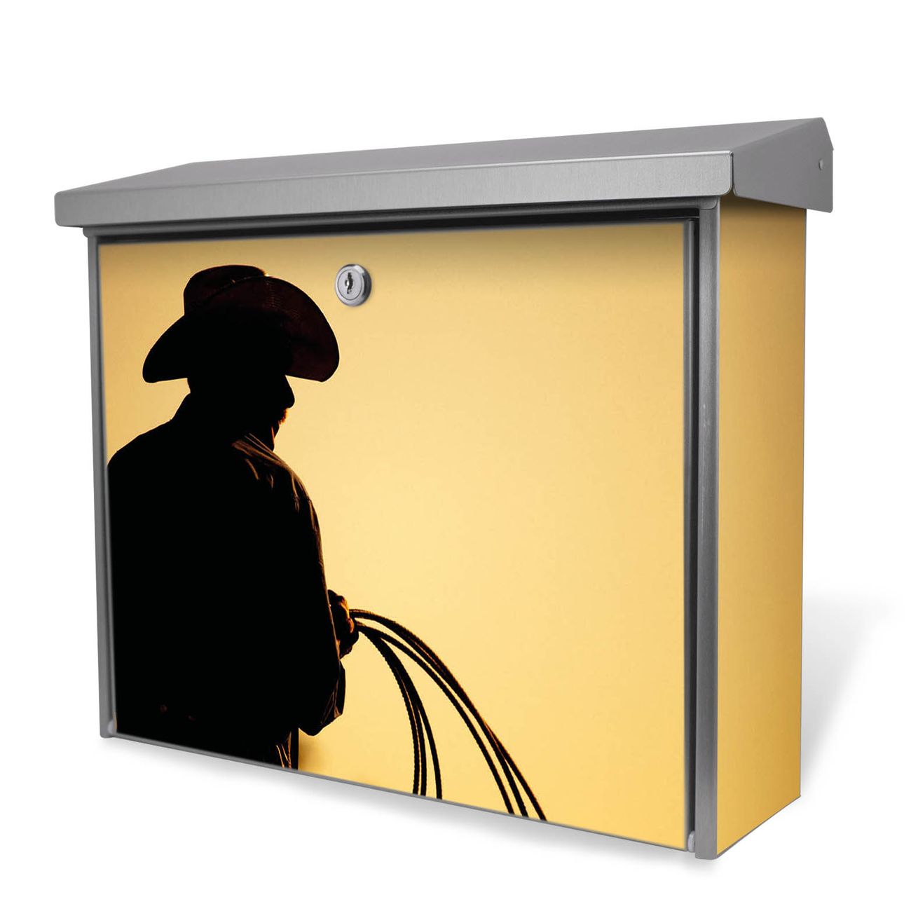 Der Postkasten mit Cowboy Motiv hat ein sehr ansprechendes und zeitloses Design. Unsere Motivpalette hält jede Menge Varianten bereit, ob klassisch, modern, verspielt oder witzig - für jeden haben wir das passende Motiv parat. Der Briefkasten ist das Aushängeschild Ihres Hauses.