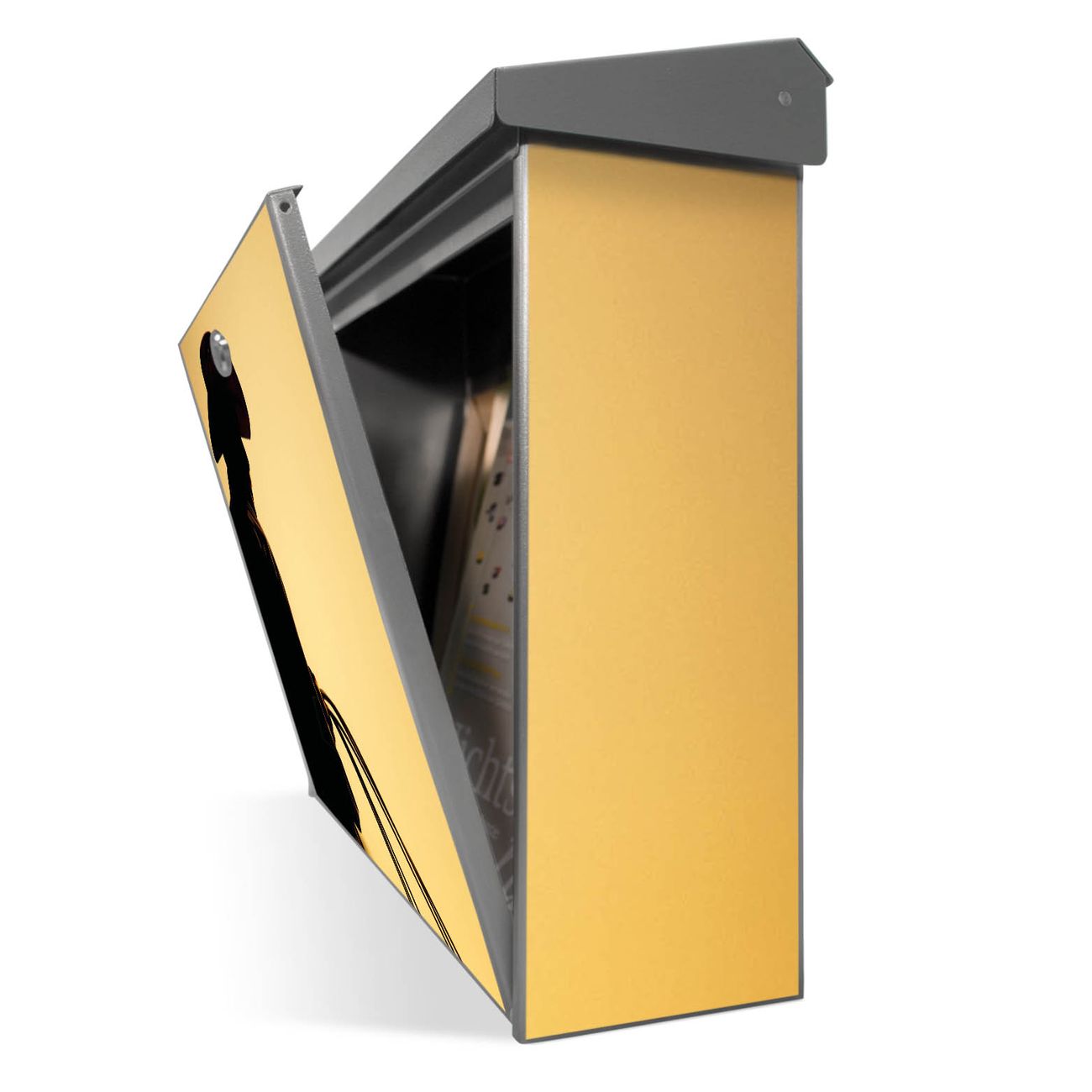 Sie können diesen Briefkasten sowohl als Wandbriefkasten montieren oder mit dem passenden Ständer als Standbriefkasten einbetonieren. Die gestaltete Motivfolie ist absolut wetterfest, UV-beständig und ein zusätzliches Schutzlaminat bewahrt Ihren Briefkasten vor unnötigen Kratzern.