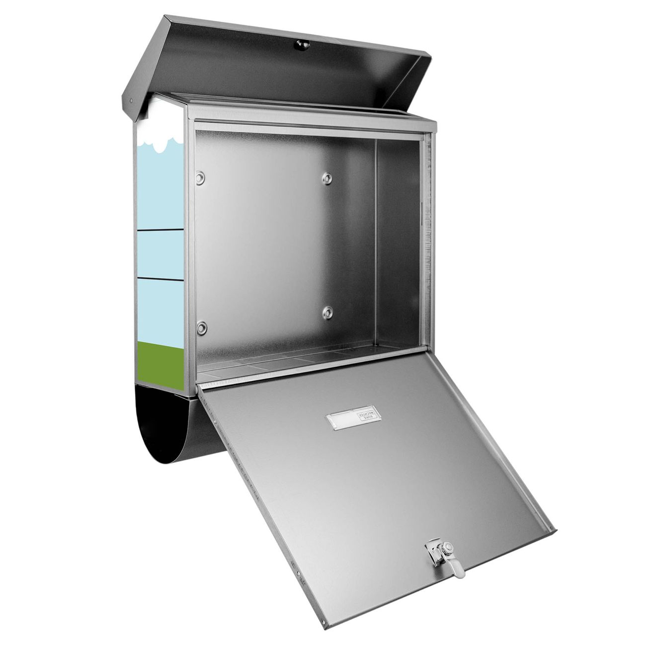 Der Briefkasten besteht aus Edelstahl, einem hochwertigen Material das rostfrei und äußerst unempfindlich gegenüber Witterungseinflüssen ist. Das Motiv besteht aus einer wetter- und UV-festen Folie, die Ihren Briefkasten zusätzlich vor Kratzern schützt. Der Postkasten ist je nach Auswahl 38 x 39 x 12 CM oder 38 x 31,5 x 12 cm (BxHxT) groß. Der Briefeinwurf ist 33,2cm x 3,1cm, Format DIN C4. Der Briefkasten wird mit Montagematerial und zwei Schlüsseln geliefert.
