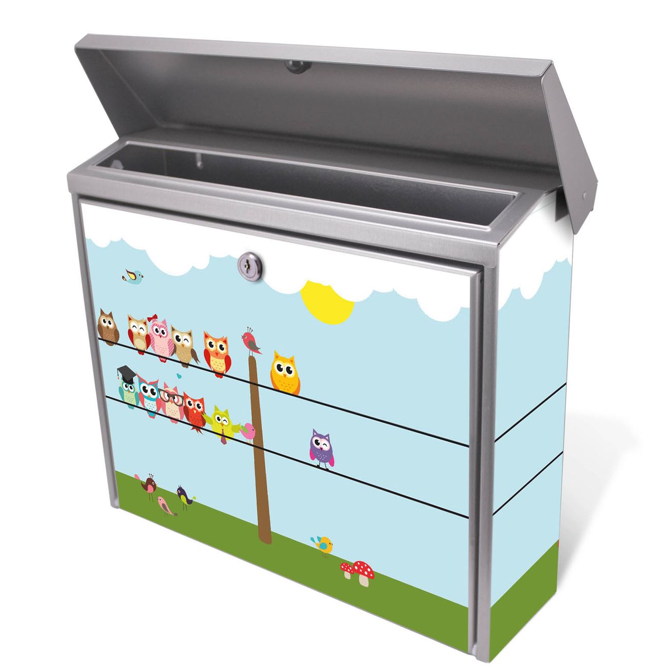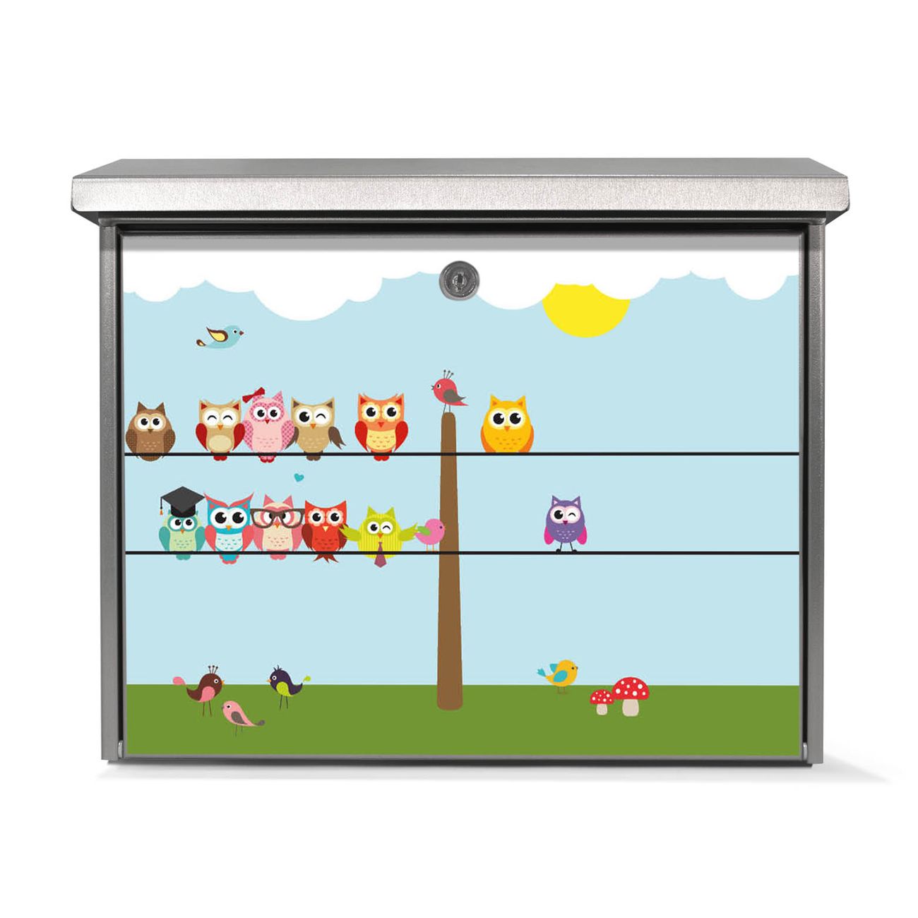 Sie können diesen Briefkasten sowohl als Wandbriefkasten montieren oder mit dem passenden Ständer als Standbriefkasten einbetonieren. Die gestaltete Motivfolie ist absolut wetterfest, UV-beständig und ein zusätzliches Schutzlaminat bewahrt Ihren Briefkasten vor unnötigen Kratzern.