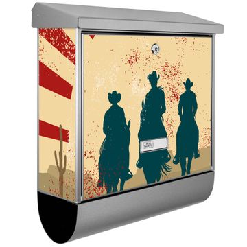 Der Drei Cowboys Motivbriefkasten hat ein sehr ansprechendes und zeitloses Design. Unsere Motivpalette hält jede Menge Varianten bereit, ob klassisch, modern, verspielt oder witzig - für jeden haben wir das passende Motiv parat. Der Briefkasten mit Zeitungsfach ist Ihr Aushängeschild, heben Sie Sich ab ohne auf Funktionalität zu verzichten.