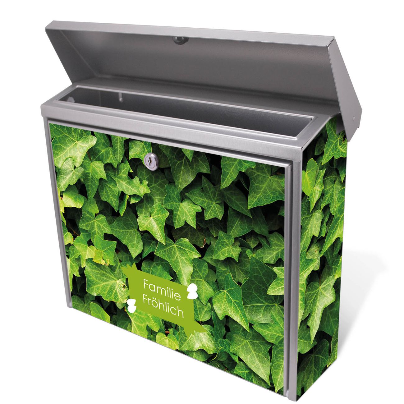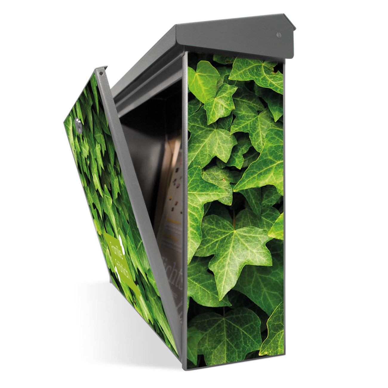 Der Postkasten mit Efeu Motiv hat ein sehr ansprechendes und zeitloses Design. Unsere Motivpalette hält jede Menge Varianten bereit, ob klassisch, modern, verspielt oder witzig - für jeden haben wir das passende Motiv parat. Der Briefkasten ist das Aushängeschild Ihres Hauses.