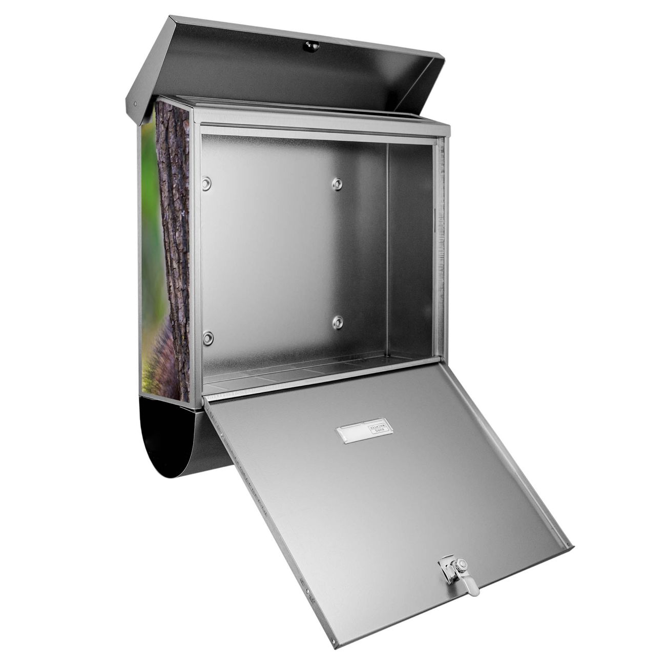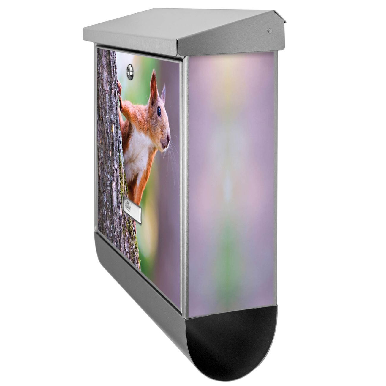 Der BURG-WÄCHTER Edelstahl Briefkasten mit Motiv Eichhörnchen und Zeitungsrolle bietet Ihnen mit seinem Fassungsvermögen genügend Platz auch für große A4 Sendungen und Zeitschriften. Das integrierte Regendach schützt Ihre Post vor dem Eindringen von Regen.